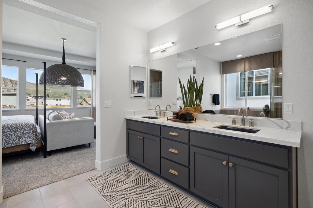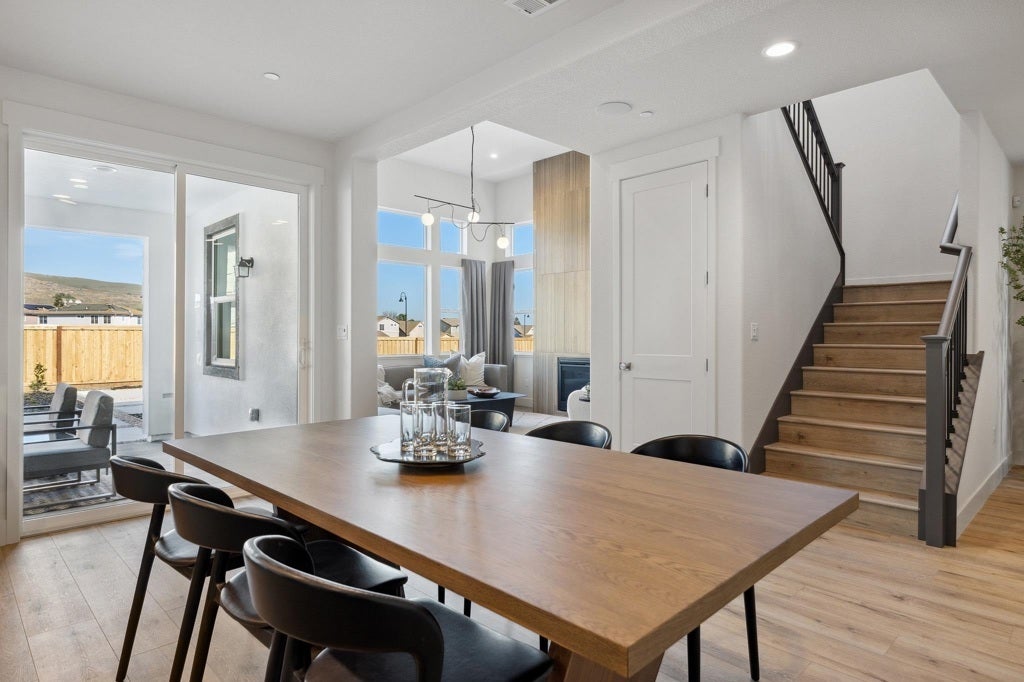This stunning 5-bedroom, 4-bathroom home offering an impressive 2,818 square feet of beautifully designed living space.Upon entry,you'll immediately find the main floor bedroom complete with a walk-in closet, full bath with a walk-in shower.As you continue through the main level, you’ll find theformal dining room and staircase to the second floor. Just beyond is the cozy family room, complete with a gas fireplace and direct access to the covered backyard patio, perfect for relaxing or entertaining outdoors.On the opposite side of the home, the gourmet kitchen awaits, offering a center island, generous pantry, single basin sink, and a full stainless steel appliance package.Upstairs, a spacious loft provides the perfect space for a game room, or home office. The second and third bedrooms share a full bathroom with dual vanity, tub, and shower. The fourth bedroom features a full en-suite bathroom, and the laundry room is conveniently located upstairs with a nearby linen closet.At the end of the hall, retreat to your own private oasis in the primary suite, which boasts a luxurious spa-inspired bathroom with soaking tub, solid surface walk-in shower, dual vanity, and oversized walk-in closet. This home includes multi-zone HVAC, solar energy system, prewired electric charging stations