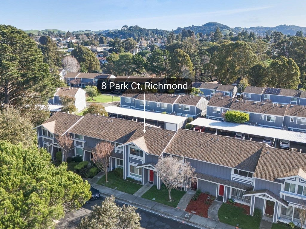 Welcome to 8 Park Court, a well-maintained two-level townhome in the desirable Hilltop Green community, offering a comfortable blend of functionality, style, and everyday convenience. The light-filled main level features recessed lighting, contemporary flooring, and an open-concept layout connecting the living and dining areas to a refreshed kitchen with modern cabinetry, stone countertops, stainless steel appliances, and a spacious pantry—ideal for daily living and entertaining. Upstairs, two generously sized bedrooms provide ample closet space and share a well-appointed full bath, while a convenient half bath on the main level adds ease for guests. Dual-pane windows with window coverings enhance energy efficiency, privacy, and natural light throughout. Enjoy in-unit laundry, direct access to a private patio for relaxing or outdoor dining, and a covered two-car carport with extra storage. Residents also enjoy access to a community pool and nearby Hilltop Green Park. Ideally located near shopping, dining, Hilltop Mall, and commuter routes, with a short commute to the Richmond Ferry Terminal and El Cerrito BART for easy access to San Francisco, this home offers a low-maintenance East Bay lifestyle in a peaceful, well-connected setting.