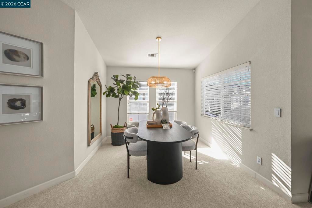 Welcome to 10838 McPeak, perched in the scenic hills of Donlan Canyon, your stylish retreat in the coveted California Highlands. This corner-unit, townhouse-style condo is ideal for anyone looking for modern comfort, convenience, & a peaceful place to recharge. Step inside to an airy, light-filled layout w/ high ceilings, natural light, brand-new carpet & vinyl flooring, updated lighting & hardware. The open-concept keeps life simple & connected, w/ easy flow from the kitchen to the dining & living spaces, perfect for hosting friends, working from home, or unwinding after a long day. The attached two-car garage offers secure parking & extra storage. The primary suite includes a private bath, while the second bedroom & hall bath offer flexibility for a guest room, office, or workout space. After hours, step onto your private deck, breathe in the Donlan Canyon views & enjoy sunset that feel miles away from the hustle. CA Highlands offers amenities that match your lifestyle, pool days, nearby hiking trails, parks, & close proximity to highly rated Dublin schools. You’re just minutes from BART, major freeways, great dining spots, shopping, & everything Dublin & Pleasanton have to offer. A low-maintenance home that blends nature, convenience, & modern living.