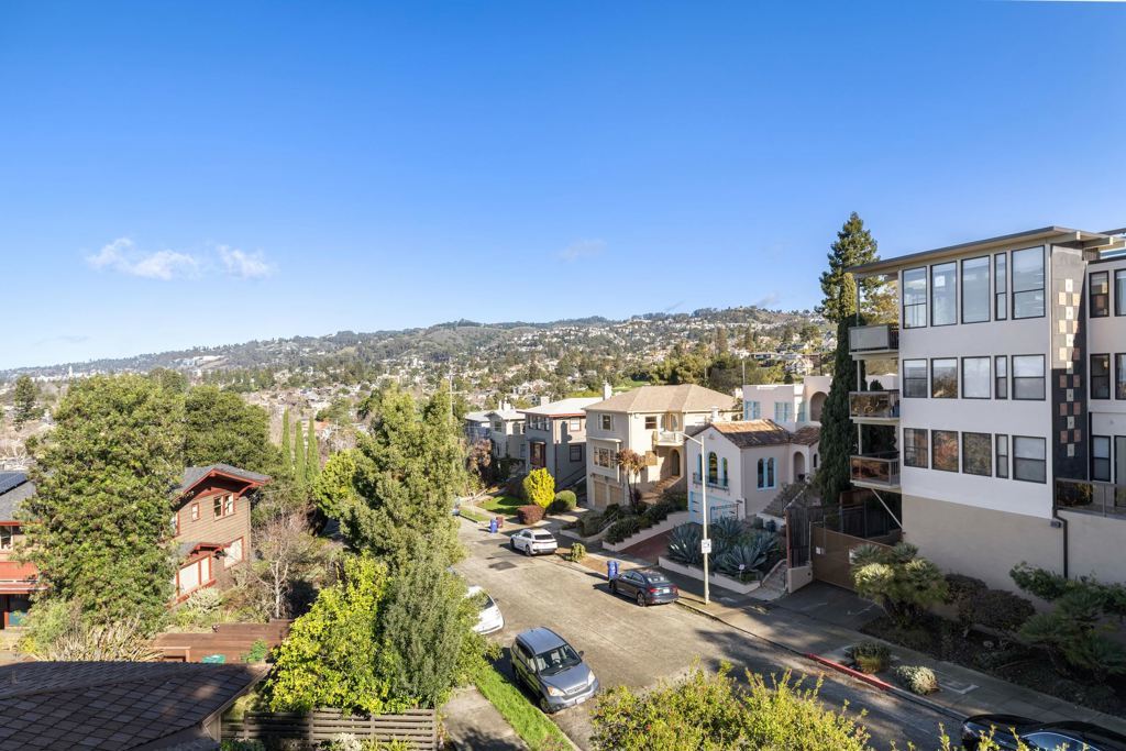 Welcome to 5405 Carlton St Unit 303, where mid-century design meets modern living in the heart of Rockridge. This Corner Unit condo is a true gem, offering a harmonious blend of timeless style, natural light, and breathtaking views. Step inside and be greeted by expansive windows that flood the space with sunlight, highlighting the clean lines and open flow of the mid-century-inspired design. With 2 spacious bedrooms and 2 beautifully updated bathrooms, this home is as functional as it is stylish. The kitchen is a chef's dream, featuring sleek quartz countertops, stainless steel appliances, and abundant cabinetry—perfect for everything from quick breakfasts to gourmet dinners. The primary suite is your personal sanctuary, complete with double closets and a spa-like en-suite bathroom outfitted with dual sinks and chic, modern finishes. Step out onto your private balcony to soak in the stunning views of Rockridge and the surrounding hills—a perfect spot for your morning coffee or evening unwind. This boutique building is designed for convenience, boasting secure parking, an elevator, and secured storage. The location seals the deal: situated near the vibrant energy of Rockridge’s charming shops, top-rated dining, and cozy cafes, BART, and HWY 24.