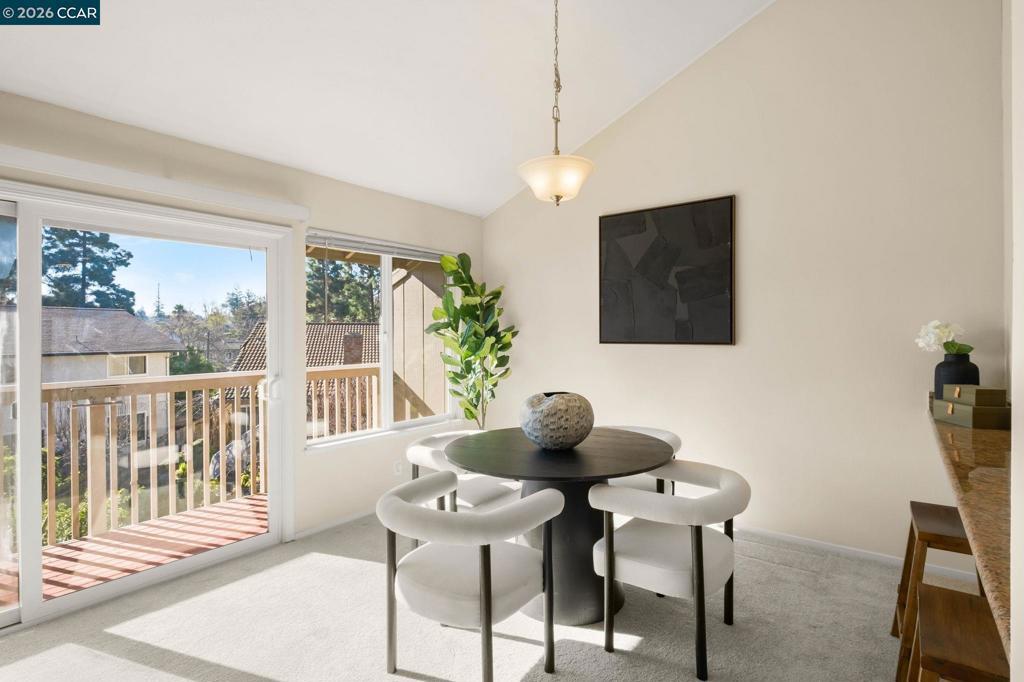 OPEN SAT/SUN! Welcome to this beautifully updated townhome in desirable Turtle Creek neighborhood, offering an exceptional blend of comfort, style, and location. Step inside to a sun-drenched living room with soaring vaulted ceilings, a cozy fireplace, & an open-concept layout. The seamless flow into the dining area & sliding glass doors to the deck balcony create the perfect setting. The updated kitchen features rich cherry wood cabinetry, sleek granite countertops, recessed lighting and a breakfast bar. Near the entry, you’ll find a versatile bedroom with vaulted ceilings, a convenient half bath, and an in-unit laundry room. Downstairs, the spacious primary ensuite serves as a private retreat with sliding glass doors to its own deck and a well-appointed bath featuring a separate vanity and mirrored closets. Two additional bedrooms and a full hall bath with shower/tub combo complete the lower level. Additional highlights include newer carpet throughout, a private front deck, and covered carport parking. Ideally located walking distance to several parks, basketball court and hiking areas. Close to shopping, dining, and top rated schools, this move-in-ready home offers low-maintenance living in a highly desirable community!