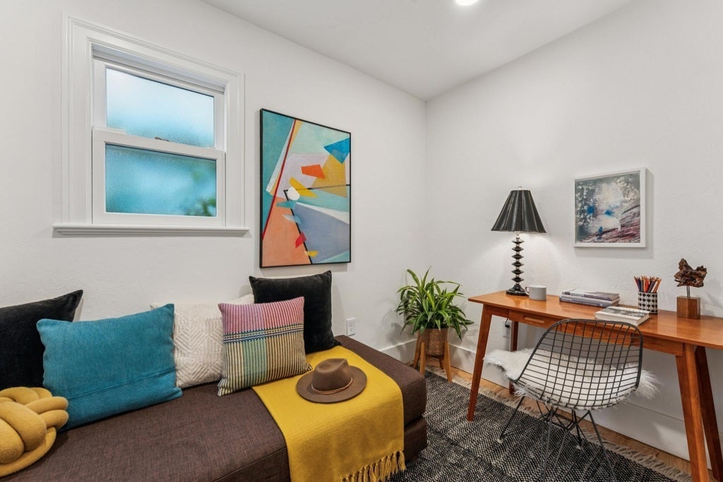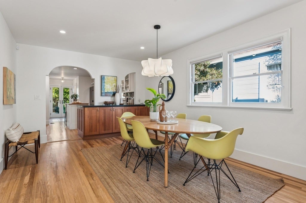 Beautiful Mediterranean residence on a quiet Berkeley street. Filled w/ natural light, this spacious 2+-br, 1.5-ba home features hardwood floors, custom built-ins & flexible living spaces including an office or guest room & a large permitted cottage-style family/rec room (measured at an additional 347sf for a total of 1573sf) plus a workshop (semi-finished garage at an additional 239sf). The living room features multi-light and stained glass windows & a cozy fireplace with custom cabinetry. The updated kitchen offers island seating & ample storage. French doors open onto the deck and backyard. The primary bedroom faces the garden & also features French doors for outdoor enjoyment. Major system upgrades include seismic retrofitting, updated plumbing, 200 amp electrical, French drain, heat pump HVAC w/ central air, dual-pane windows, integrated wired internet system & newer roofing w/ owned photovoltaic solar panels. The private fenced yard features garden beds, mature citrus, pomegranate & guava trees. Off-street parking and a long driveway complete this versatile property (ADU conversion possibilities?). Exceptional connectivity (Walk Score 90, Bike Score 96) to favorite local eateries, parks & amenities, and approx ½ mi. to Ashby BART.