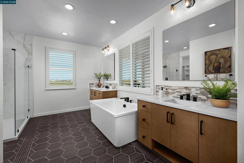 Brand new home with a large yard at Serena will be move-in ready sometime March/April for it's lucky new owners! Home has been highly upgraded with designer finishes including richly stained Vintage cabinetry with elegant oil rubbed bronze hardware, ORB plumbing and light fixtures, added slider doors and much more. Buyer still has the ability to personalize flooring and counter finishes. Additionally, there is a Jr. suite with a full bath on the lower level- just waiting for extended family or guests. Home also has a cook's kitchen with large center Island, plenty of cabinets and a prep-sink, built-in stainless appliances, soaring ceiling and large outdoor covered California Room. The upper level offers spacious bedrooms, laundry, shared bath, loft and sumptuous Primary suite with oversized shower, freestanding soaking tub, and walk-in closet. FREE SOLAR is INCLUDED. Ask about rate buydown to maximize your buying power and lower your payments. Don't delay! *Note: Photos shown are of model home. Finishes may be different. Elevation color scheme may vary from shown. see agent.