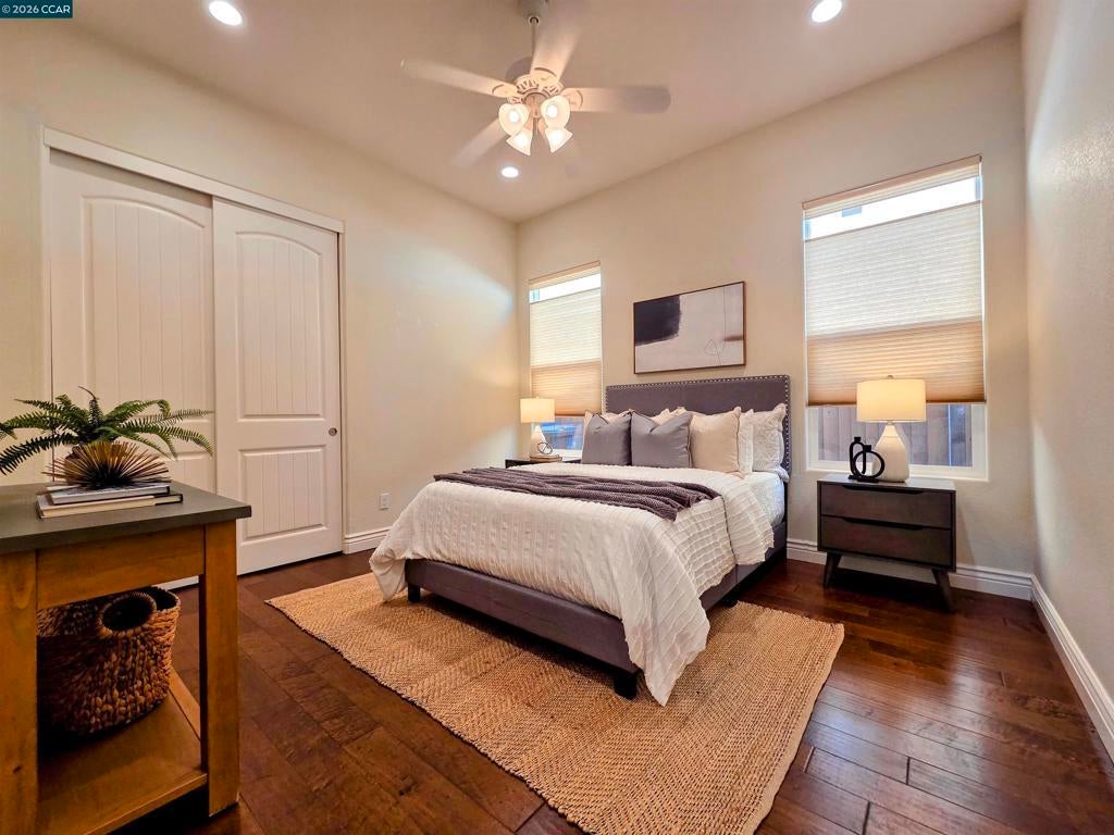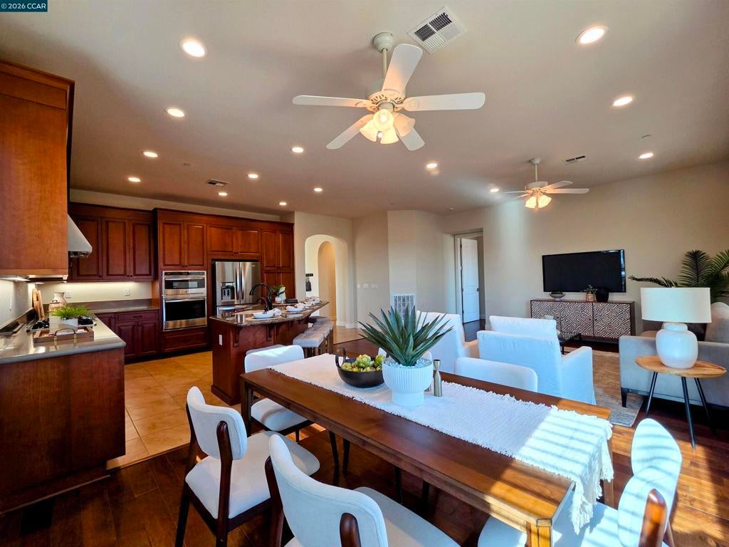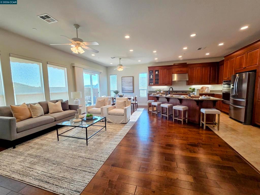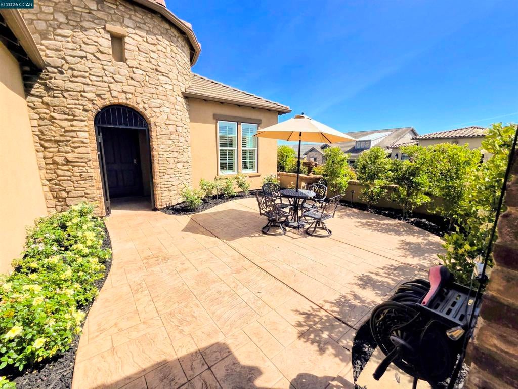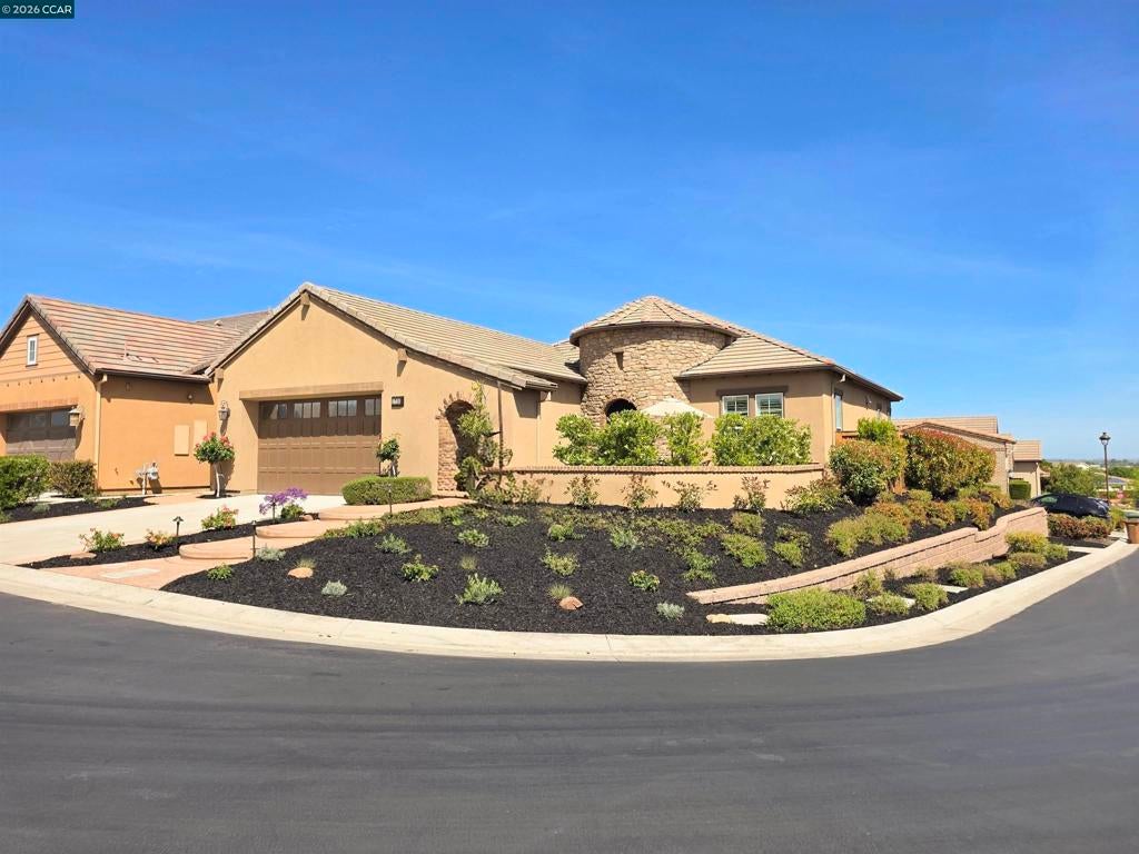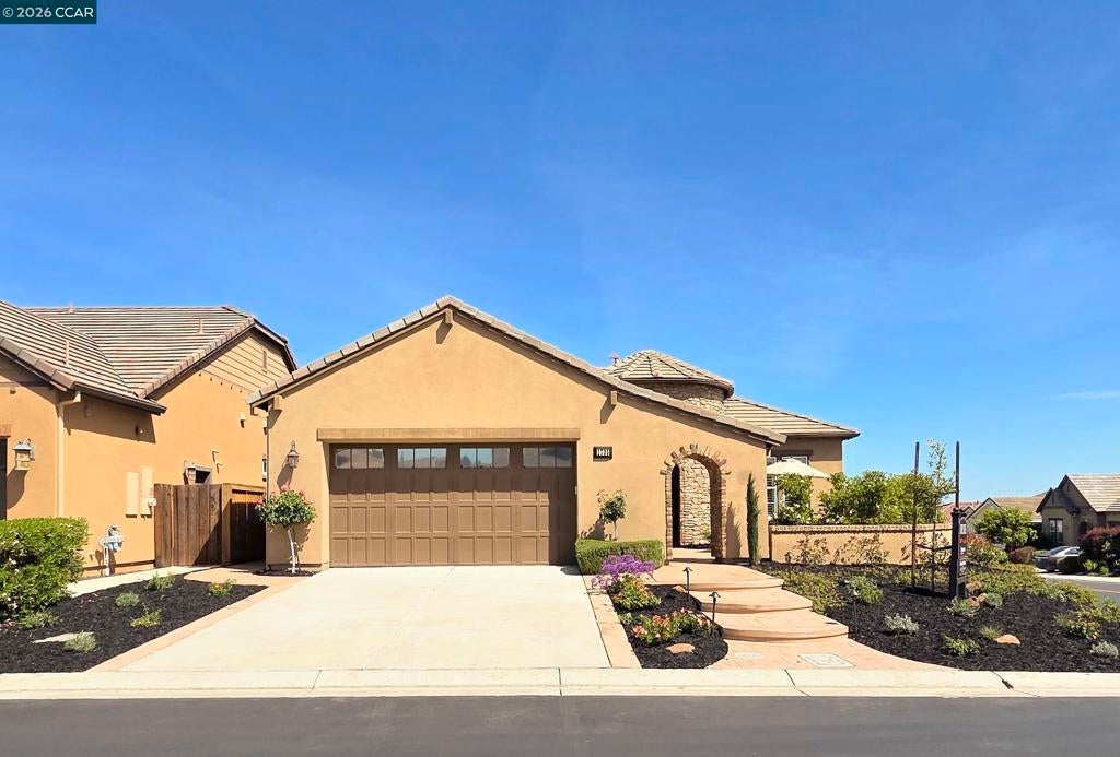 Experience luxurious resort-style living at Trilogy at The Vineyards! This stunning home offers 2-3 bedrooms with an open-concept layout, soaring ceilings, and beautiful hardwood floors. The designer kitchen is a chef's dream, featuring rich mahogany cabinets, slab stone counters, and an oversized island perfect for entertaining. Enjoy thoughtful upgrades like a dramatic turret entry, custom archways, solar, and a tankless water heater. The low-maintenance outdoor space includes a stamped concrete patio and a private courtyard, ideal for unwinding. Trilogy's exclusive amenities provide a vacation lifestyle every day—from tennis and bocce to indoor and outdoor pools, a state-of-the-art gym, and a working vineyard. All with breathtaking views of Mt. Diablo. This isn't just a home; it's a new way of life!