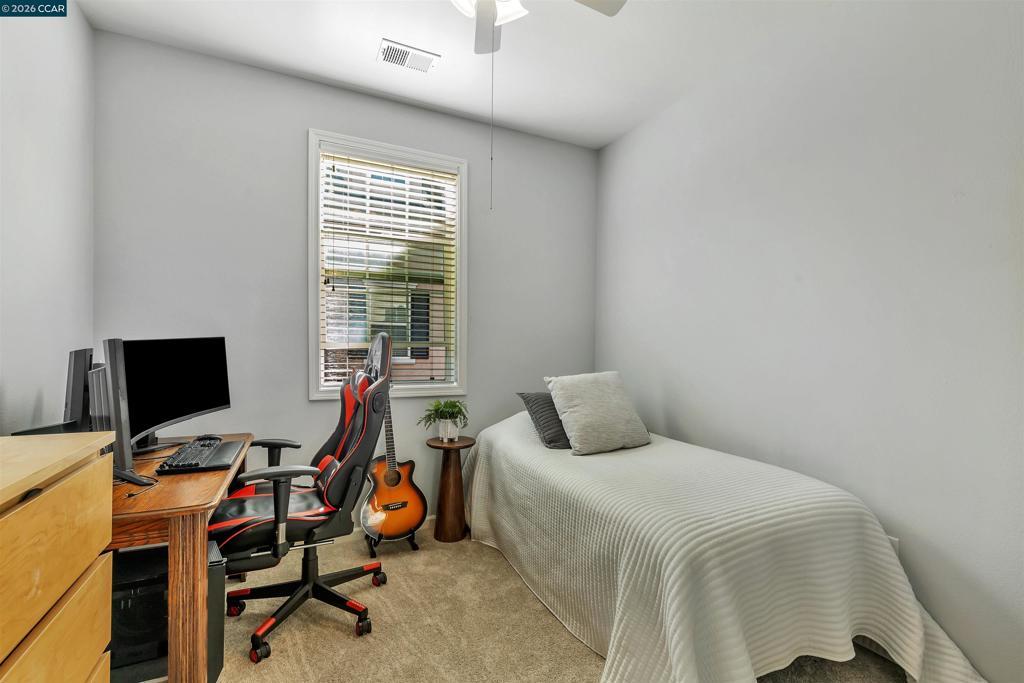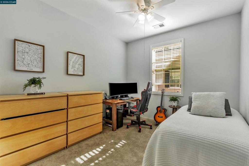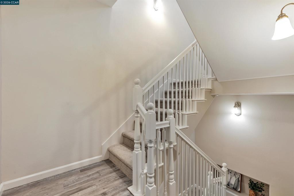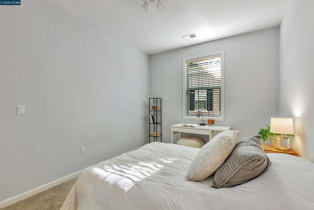 Beautifully updated four-bed, three-and-a-half-bath townhouse with 2,112 sq. ft. of living space in a prime Dublin location. Features include new carpet, tile and vinyl plank flooring, high ceilings, recessed lighting, ceiling fans in the bedrooms, and fresh paint throughout. The bright living room with a gas fireplace flows seamlessly into the dining area and modern kitchen with a large island and stainless steel appliances. A convenient half bath is located on the main floor. The spacious primary suite offers a private balcony, walk-in closet, dual sinks, sunken tub, and stall shower. The garage is supplemented with a large under-house storage room, while the laundry room includes built-in cabinets for added storage. Additional highlights include a front porch, Ring doorbell, community reserved parking pass and attached two-car garage with an installed EV charger and a Tesla charger ready to be hooked up. Updates include a new AC unit and water heater. A standalone freezer, and TV in the family room are included; other furnishings are negotiable. Low $275 monthly HOA. Walking distance to top-rated elementary, middle, and high schools, shopping, dining, parks, The Wave swimming center, and BART for an easy commute.