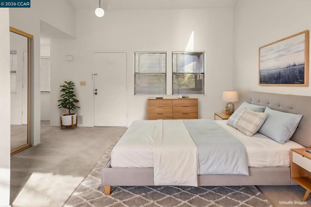 Second-story studio condominium with a private balcony and high vaulted ceilings that create an open, airy feel. The functional layout offers comfortable living space with abundant natural light and added privacy from the upper-level location. A dedicated laundry closet includes in-unit washer and dryer hookups for everyday convenience. Kitchen appliances are included with the property. The community is calm, quiet, and well maintained, featuring mature landscaping throughout the complex and very nice parking lot with guest parking available. HOA amenities include a community swimming pool, with tennis and pickleball courts. A neighborhood park and shaded children’s playground are directly across the street from the community entrance. Conveniently located in Pleasant Hill near shopping, dining, and daily essentials, including Sun Valley Mall. Easy access to Highways 680 and 4 makes commuting simple, while Diablo Valley College is just minutes away. The surrounding suburban neighborhoods reflect strong pride of ownership and a welcoming residential atmosphere. HOA dues include select utilities and contribute to the care of the grounds and lush greenery that define the community. An excellent opportunity for low-maintenance living in a desirable and peaceful area.