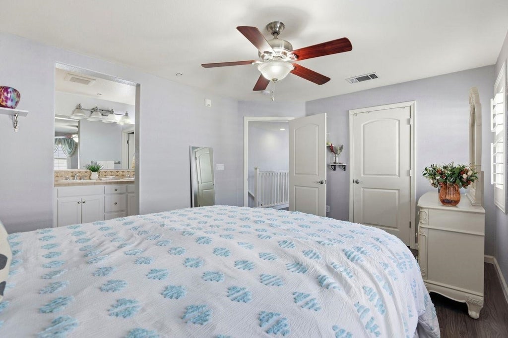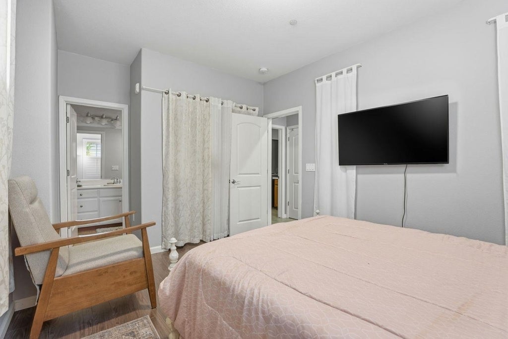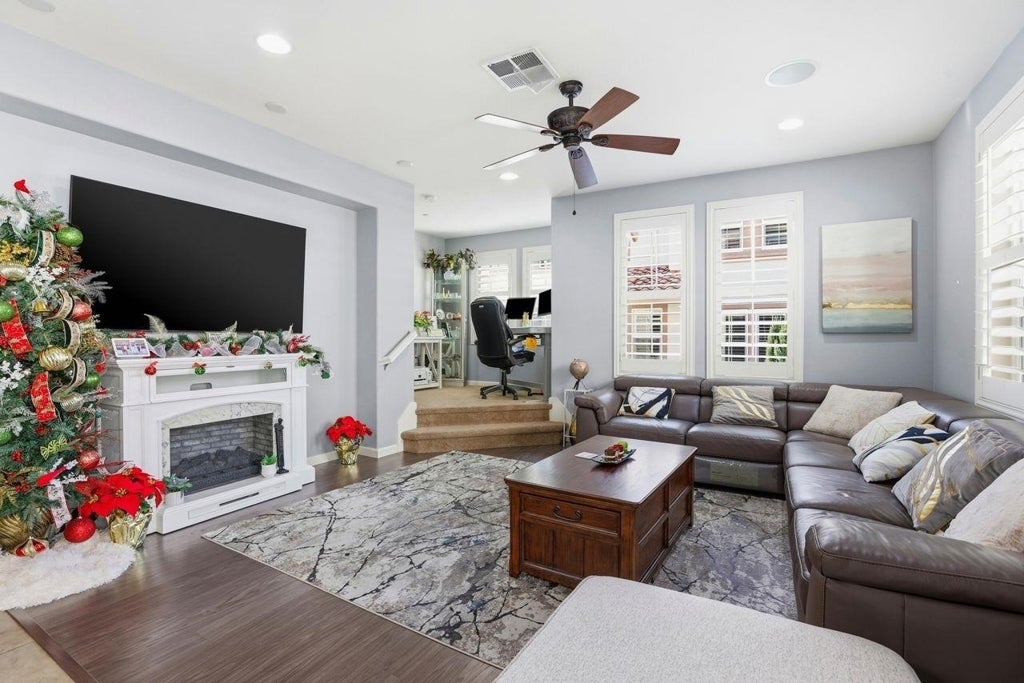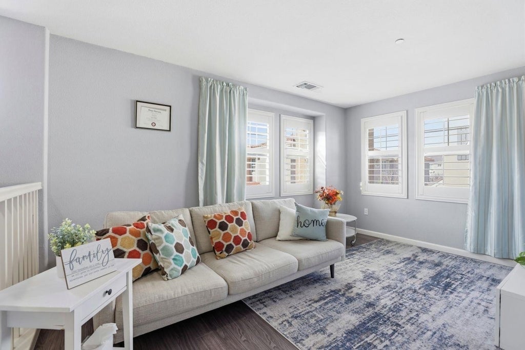 This beautiful condominium lives like a townhouse, offering a rare multi-level layout in the desirable Montage community of Livermore. With approximately 1,500 square feet, this spacious home features two bedrooms and two and a half bathrooms, feeling larger than most two-bedroom homes in the area. The street-level entry includes a private bedroom, ideal for guests or flexible living. The main living level features an open-concept layout with a bright living room, dining area, and kitchen—perfect for everyday living and entertaining. The kitchen offers ample counter space, stainless steel appliances, a large pantry, and a convenient study or work-from-home nook. Hardwood flooring, neutral tones, and abundant natural light create a warm, inviting atmosphere. The upper level offers a spacious primary suite with en-suite bathroom and a versatile loft, ideal for a home office, media room, or additional lounge space. With charming architecture and a thoughtful, open layout, this home delivers the comfort and feel of townhouse living with the convenience of a condo lifestyle.