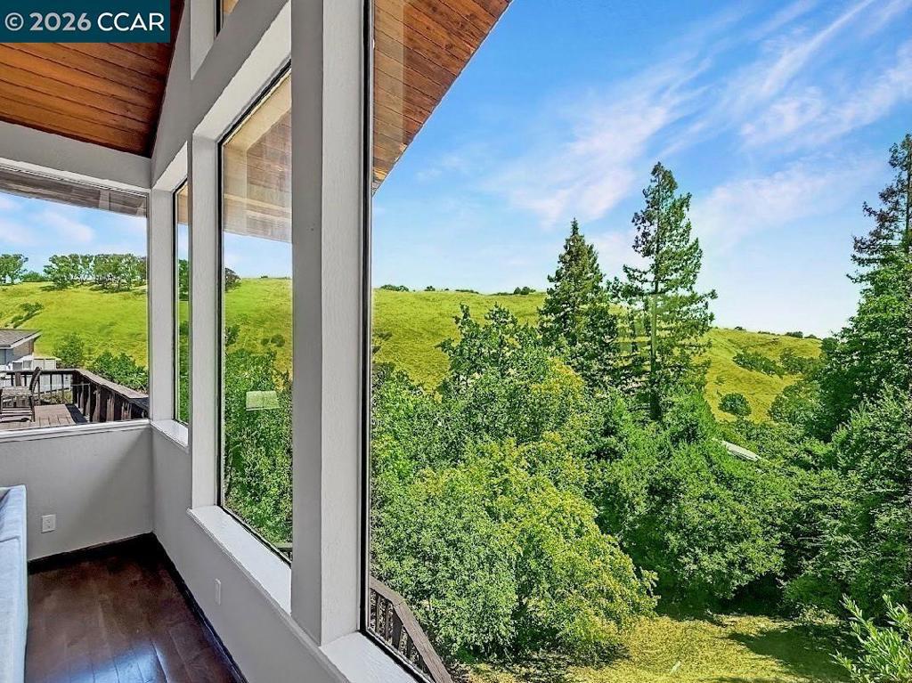 Experience peaceful living just minutes from downtown Walnut Creek and Lafayette. Nestled among mature redwoods in a secluded setting, this beautifully crafted cedar-shingled home offers inspiring views of Mt. Diablo and the Acalanes Ridge. The light-filled main level features soaring ceilings, hardwood floors, a large rustic fireplace, and a wall of windows framing the ever-changing landscape. The updated eat-in kitchen includes granite countertops, stainless steel appliances, wine refrigerator, breakfast bar seating, and opens to the dining area with access to a spacious wraparound deck—ideal for entertaining. The primary suite is a private retreat with vaulted ceilings, abundant natural light, and direct access to a large private deck. The lower level provides excellent flexibility with three large bedrooms, two full bathrooms, and a generous family room featuring a brick fireplace, wet bar, and direct access to the landscaped backyard and hot tub overlooking the hills. Owned solar helps reduce energy costs. Centrally located near award-winning schools, trails, open space, shopping, and dining.