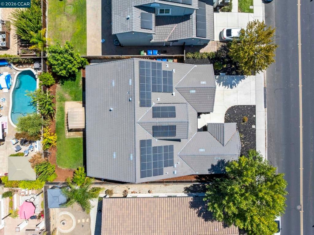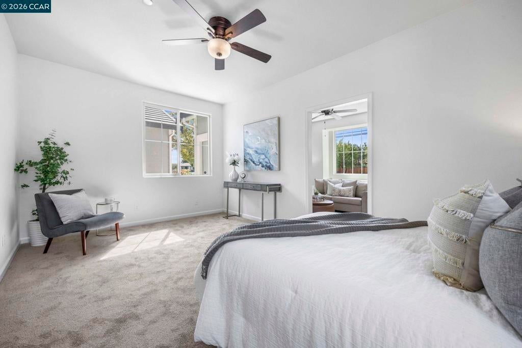 Beautifully upgraded two-story home in a desirable Brentwood neighborhood! This spacious residence offers modern comfort and flexible living options, featuring a separate converted garage that can serve as a game room, private casita, home office, or rental suite with its own entry. Inside, the open-concept design features a spacious living area and a sleek, modern kitchen — refrigerator, washer, and dryer included for a truly move-in ready experience. Just off the kitchen, you’ll find a dedicated tech area ideal for remote work or homework, along with a convenient laundry room featuring cabinetry and ample storage. The main level includes two primary bedrooms, one with private access, ideal for guests or multi-generational living. Upstairs, a generous loft and large secondary bedrooms. Energy-efficient solar panels, water softener, revers osmosis, and an EV charging station add value and sustainability. Enjoy a private backyard oasis with lush pomegranate and fruit trees — perfect for outdoor gatherings. Move-in ready and designed for today’s lifestyle, this home blends luxury, versatility, and efficiency in one incredible package!