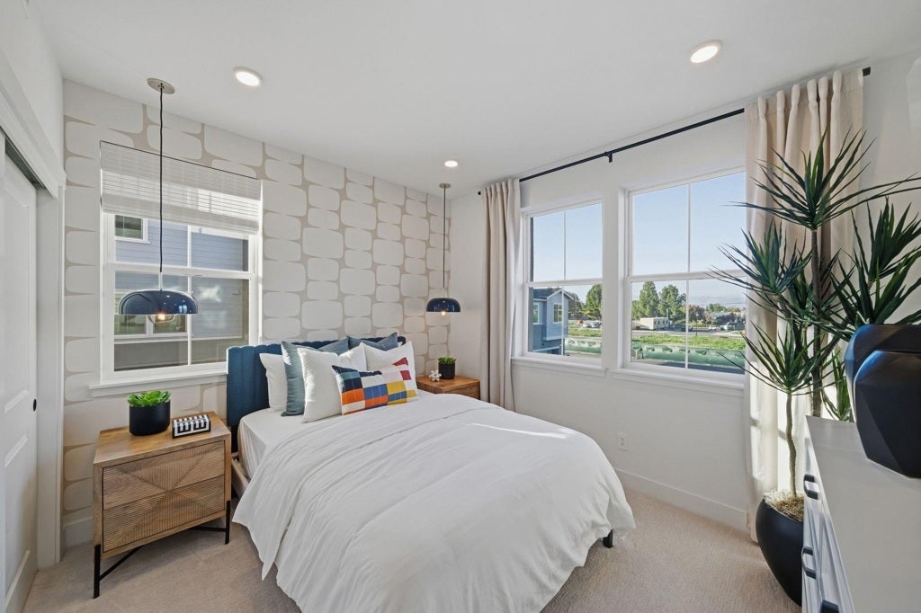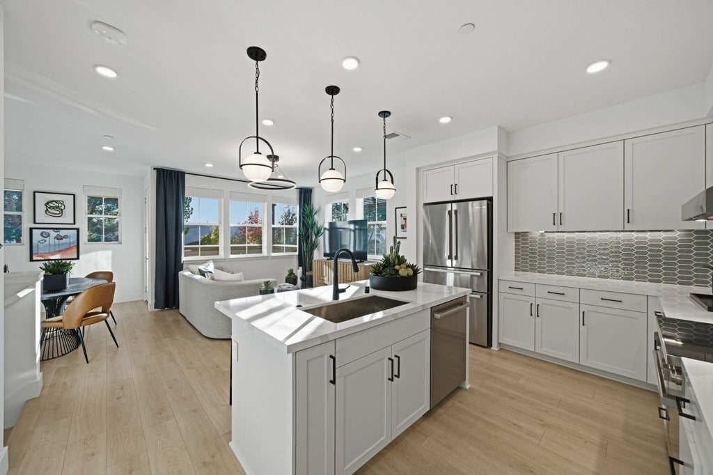 Welcome to Homesite 176 at Alicante, where everyday ease and purposeful design come together across 1,187 square feet of thoughtfully crafted living space—move-in ready by March 2026! The open-concept second floor seamlessly connects the family room and kitchen, creating an ideal setting for both daily living and entertaining. The beautifully appointed kitchen features Dove Gray recessed-panel Beech Shaker cabinetry, elegant granite slab countertops, and sleek Bosch stainless steel appliances. The private primary suite offers a spacious bedroom, a well-designed bathroom with dual sinks and a walk-in shower, and an expansive walk-in closet. A well-sized secondary bedroom and full bathroom provide additional comfort and flexibility. Located in the Arroyo Crossings community, residents will enjoy access to exceptional amenities including a clubhouse with a chef’s kitchen, lounge areas, a pool, BBQ/picnic spaces, and pocket parks. *Representative MODEL photos added.