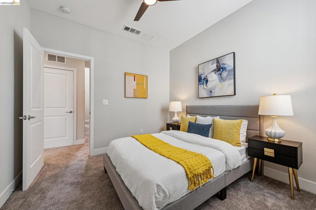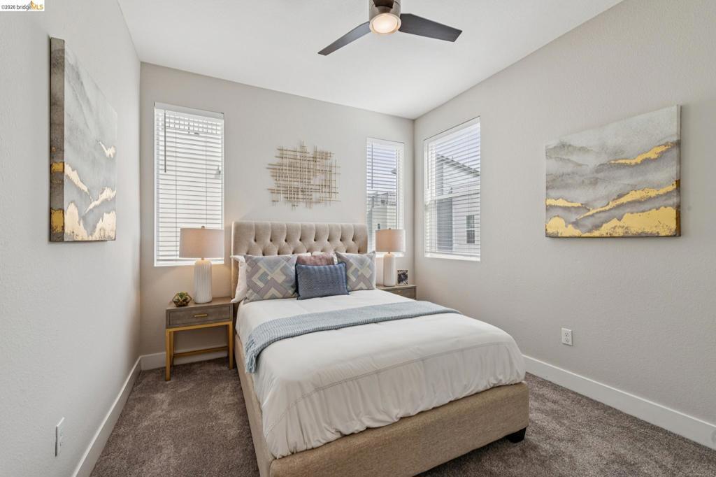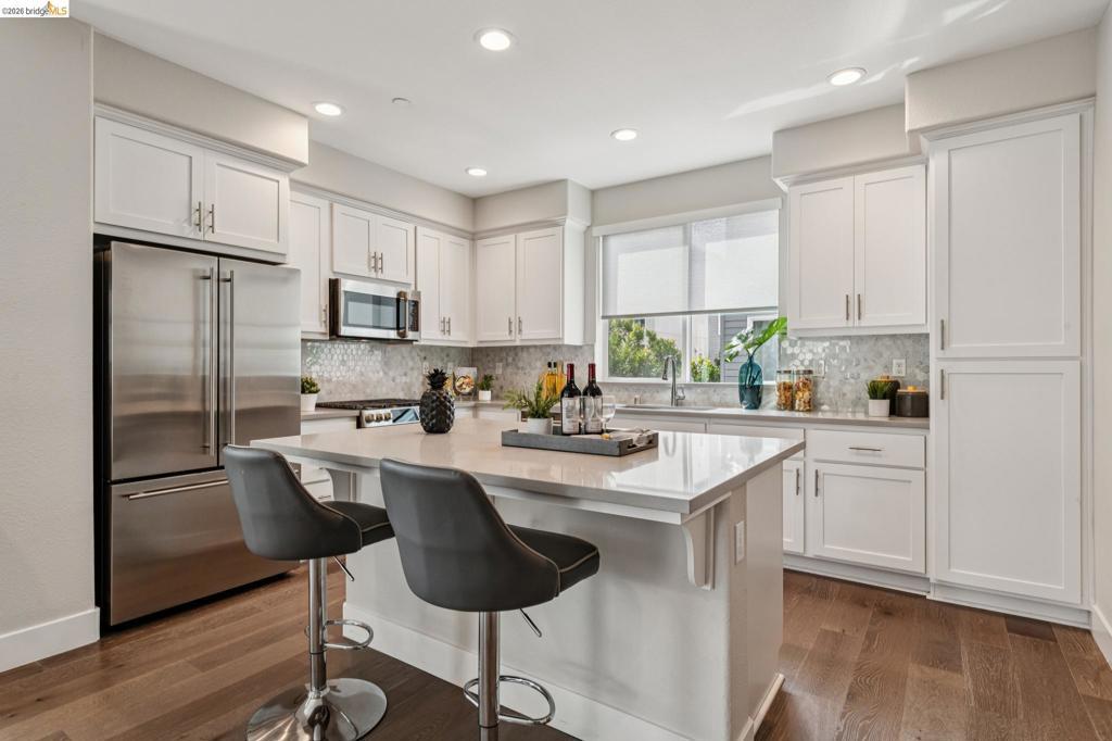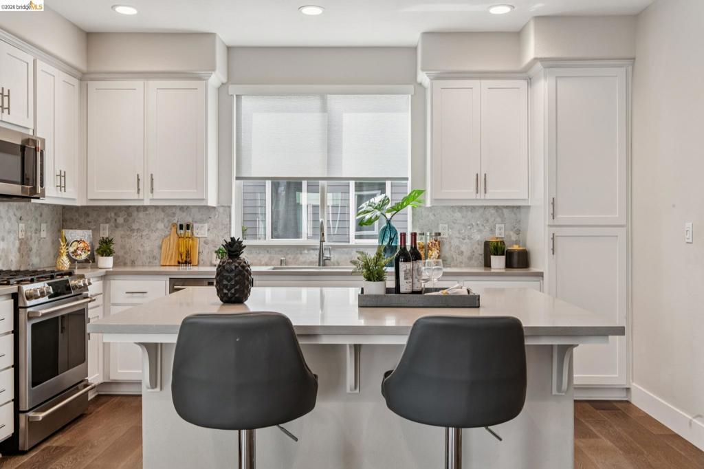 Modern 3BD/4BA end-unit townhome in Marina Bay’s desirable NOMA community. Built in 2018, this light-filled, multi-level home offers 1,739± sq ft of open-concept living with $75K in upgrades, including automated blinds, Café appliances, Monogram fridge, and a premium security system. Spacious living room flows into a sleek kitchen—perfect for entertaining. Enjoy a private rooftop deck with partial Bay views, ideal for outdoor dining or relaxing sunsets. The 2-car garage features epoxy floors and custom built-ins. Prime location near Bay Trail, parks, and Richmond Ferry, with easy access to Oakland, Berkeley, and San Francisco.