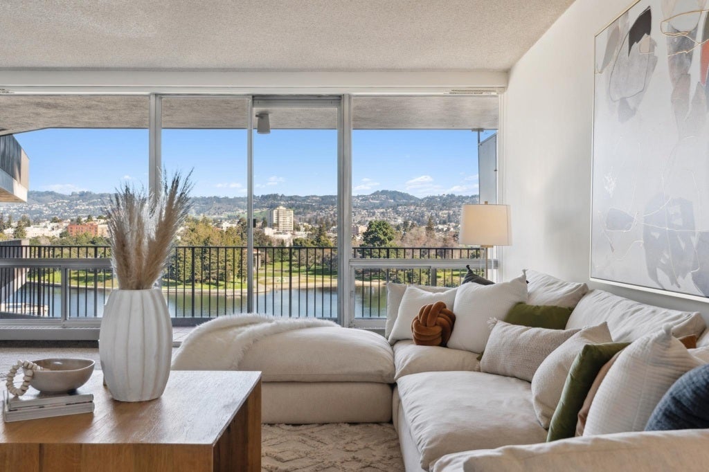 This spacious fifth floor CO-OP condo offers breathtaking, expansive views of Lake Merritt from every window, and from the long balcony that spans the length of the unit. The remodeled eat-in kitchen, fresh paint, new carpet, new modern light fixtures, and open living areas create a warm and inviting space to call home. Two spacious bedrooms have generous closets, and views, and there's ample hall closets as well. This luxe co-op unit includes one parking space, guest parking, bicycle storage, roof-top access. Water and heat included in dues. Also included are on-site management, maintenance & custodian staff, and 24-hr front desk concierge. $19M seismic retrofit in 2019. Enjoy walks around Lake Merritt, access near to BART, bus, restaurants, museum, and the farmers market. Truly an urban luxe lifestyle. For info on Lake Royal community, visit https://www.lakeroyal.org/