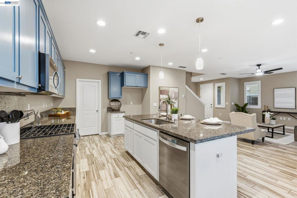 Shows like new with a price improvement, this River Islands Lathrop home is tucked at the end of a quiet court and just steps from scenic trails. This 4 bedroom, 3 bath home with a spacious loft offers privacy, thoughtful upgrades, and everyday functionality in one of Lathrop’s most desirable master planned communities. Spanning just over 2,200 sq ft, the open concept layout is filled with natural light and designed for seamless living and entertaining. Meticulously maintained inside and out, upgrades include fresh interior paint, brand new carpet and padding, reverse osmosis water system, EV charger prewire, tankless water heater, fire sprinkler system, and an expansive pantry. A full bedroom and bathroom on the main level offers flexibility for guests or multigenerational living, and the washer and dryer are included for added convenience. The low maintenance backyard features custom paving and premium turf, plus a permitted patio enclosure just under 325 sq ft for extended indoor outdoor living. Located in a master planned community near the welcome center, enjoy lakes, trails, parks, and top rated schools minutes away. Now priced to move, this is your opportunity to own a like new home without the wait.