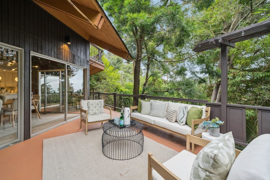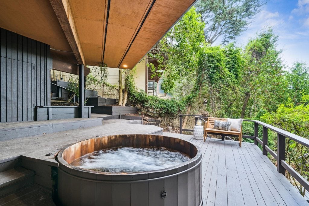 Piedmont Pines Mid Century Retreat. Nestled among the trees, this serene mid-century home offers the feeling of a Tahoe getaway just minutes from Montclair Vilage. The main house features 4+ bedrooms, 2 bathrooms, two spacious living rooms, and flexible spaces ideal for a media room, office, or gym. An additional 1-bedroom, 1-bath suite with a private entrance is perfect for guests or an au pair. Designed for effortless indoor/outdoor living, the home opens to expansive private decks leading to a tranquil pond and level play area, hot tub and surrounded by gardens with a Japanese-inspired design. Enjoy glimpses of the Bay, a fuly remodeled kitchen, and an open floor plan with warm wood finishes, a wet bar, and sliding glass doors framing lush greenery. Conveniently located near Hwy 13 and scenic hiking and biking trails, this one-of-a-kind property offers privacy, beauty, and a true connection to nature—just moments from city life. Close to top rated schools, East Bay Parks and much more!