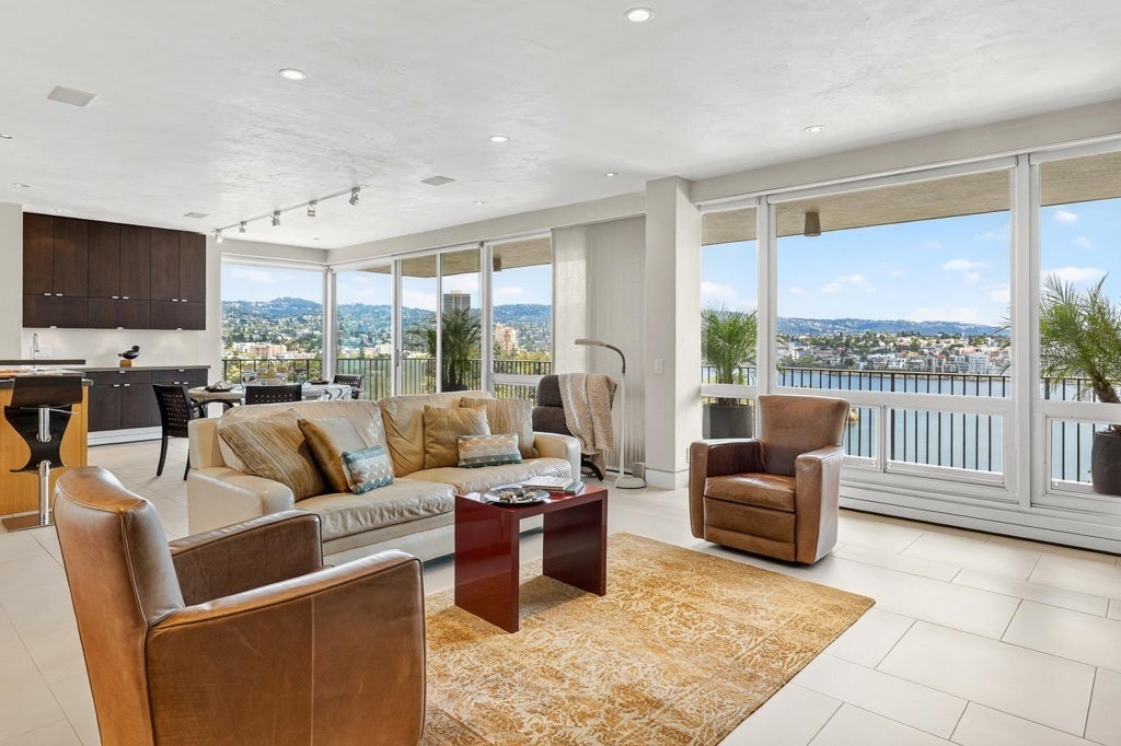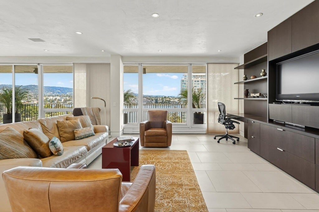 Your own private sanctuary! This sexy corner unit boasts floor-to-ceiling windows and an expansive 30+ foot patio with panoramic Lake Merritt views. Enjoy your morning coffee or al fresco dining as the lake becomes a living canvas from sunrise to sunset. The owners spared no expense in a high-end renovation. Custom closets, double-pane windows, and a spacious integrated work area with built-ins blend beauty and function. Italian stone floors and diamond-finished plaster walls exude craftsmanship, while the chef’s kitchen features Miele appliances, a Caldera glass-top stove, and seamless cabinetry. A dedicated bar with sink and refrigerator makes entertaining effortless. Both bathrooms offer radiant heated floors; the guest bath includes a Japanese soaking tub. Upgraded copper plumbing and other premium touches complete this exceptional home. Lake Royal provides a vibrant community, 24-hour secured parking, a rooftop patio with sweeping views, and easy access to BART, dining, shops, and theaters. Choose extraordinary—you deserve it! Views: Downtown