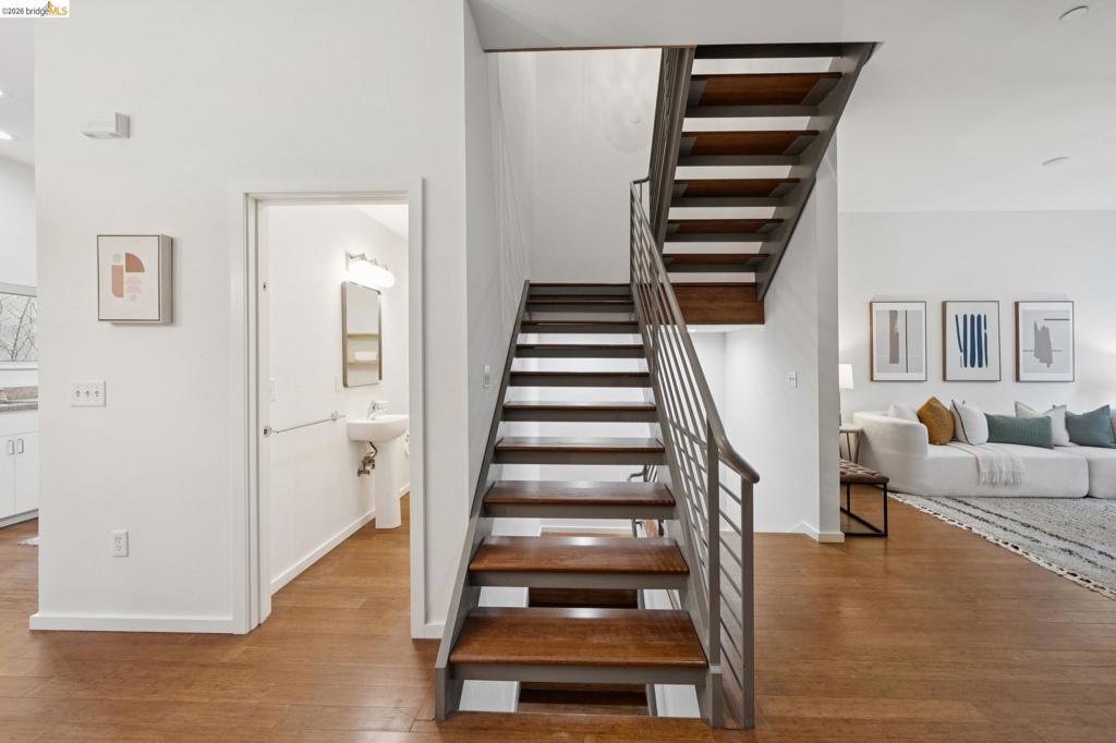 MAJOR PRICE REDUCTION! Modern townhouse living in Temescal! Exceptional build quality and design with a very user friendly layout, this sunny and spacious end unit hits all the high notes. The entry level features an attached garage for safety and storage, a bedroom with full bathroom and access to the serene private patio with a mature maple tree, great for guests, home office or bedroom suite. The second level features an open living, dining and kitchen area, high ceilings, tons of light, half bathroom, plus a dramatic two story atrium with a fun climbing wall! Upstairs are two spacious bedroom suites, including a primary with a generous walk in closet. Close to favorite Temescal, Rockridge and Piedmont Avenue shops and restaurants, parks and trails, and convenient transportation options. 96 Walkscore and 98 Bikescore!