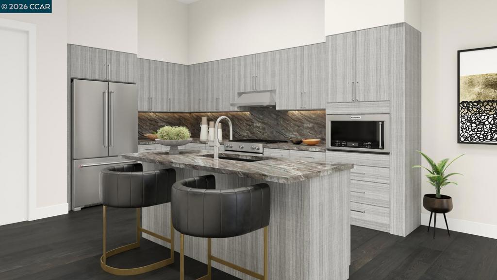 Discover luxury living in the heart of Silicon Valley. Offering new condos in Sunnyvale, Outlook at The Station features a sought-after location that puts you close to every want and convenience. Experience chic living with this stylish and modern home design. The stunning kitchen, features a sleek island with a breakfast bar, Energy Star KitchenAid stainless steel appliances, shaker style modern cabinets, quartz countertops enhanced by 10" elegant tile backsplash and full backsplash at cooktop. Adjacent is a bright casual dining area and great room with views to the lovely covered balcony beyond. The primary bedroom offers a desirable walk-in closet and is just steps from a full hall bath with a large shower, a dual-sink vanity, and a private water closet. Convenient reserved 1-car space with pre-wired EV charging. Enjoy the community clubhouse, Pool, indoor/outdoor lounge area, fireplace, dog wash, dog park, co-work mezzanine, entertainment lounge, fitness center, courtyard, playground, walking paths and expansive lawns. Outlook At The Station is located near Santana Row, Valley Fair Mall, Shopping Centers. Close to VTA Light Rail, Lawrence Caltrain and Bart. (photos not of actual home, for marketing only)
