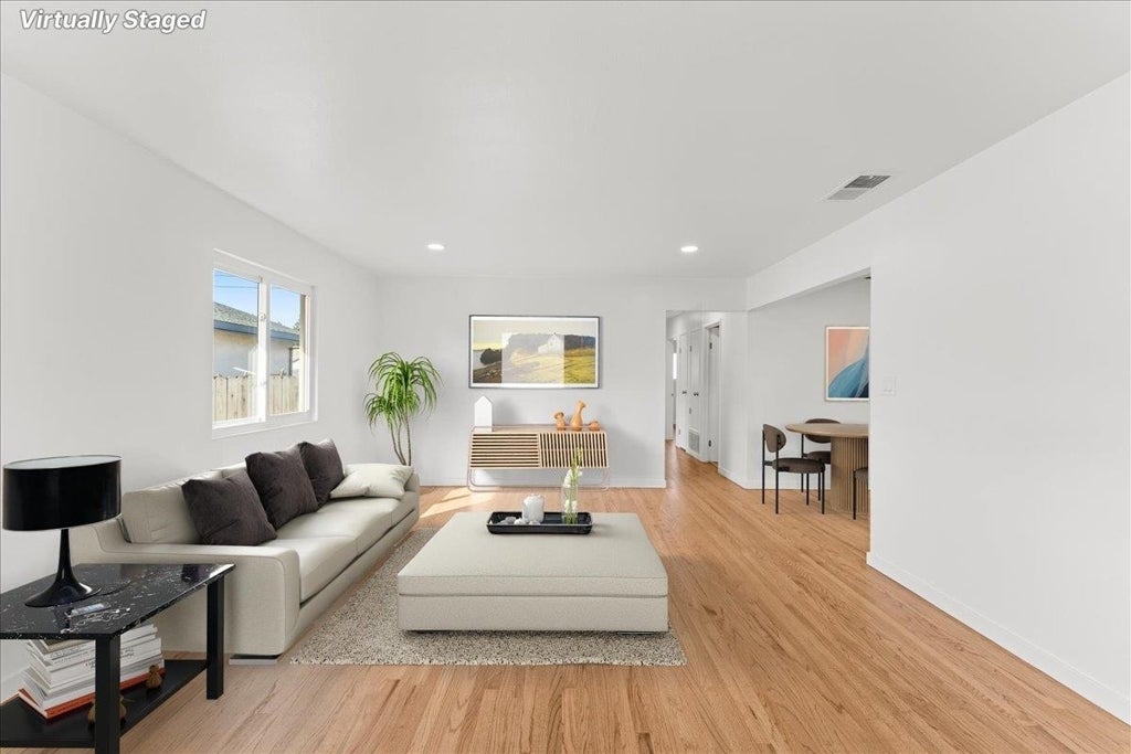 Imagine mornings on the front porch of 1866 New Jersey Street, coffee or tea in hand, as the neighborhood comes alive. This beautifully updated single-story home is the perfect setting for your next chapter. Inside, refinished hardwood floors shine across an open, light-filled layout. The living room’s cozy fireplace invites you to relax, while the seamless flow to the dining area and modern kitchen, complete with quartz countertops, stainless steel appliances, and sleek cabinetry, makes entertaining effortless. With four spacious bedrooms, two updated bathrooms, and 1,860 sqft of living space, there’s room for everyone to unwind. Outside the backyard is your blank canvas, perfect for barbecues, a garden, or stargazing. The attached two-car garage and owned solar panels add convenience and efficiency. Just minutes from parks, restaurants, shopping, and with easy freeway access, this home offers the lifestyle you’ve been waiting for. Make it yours today!