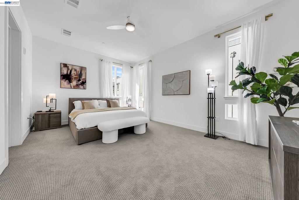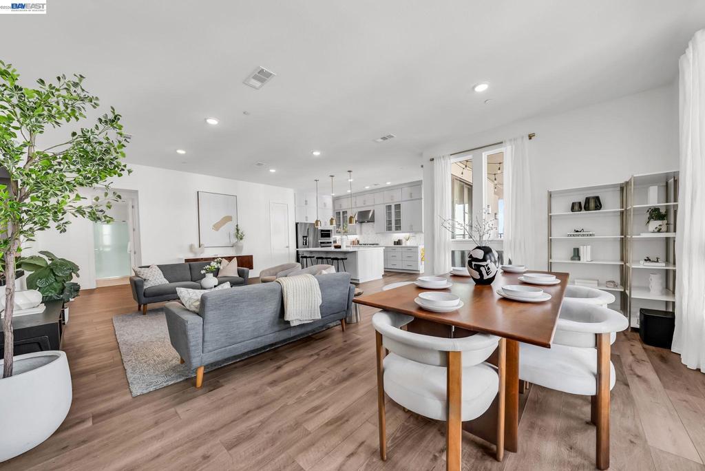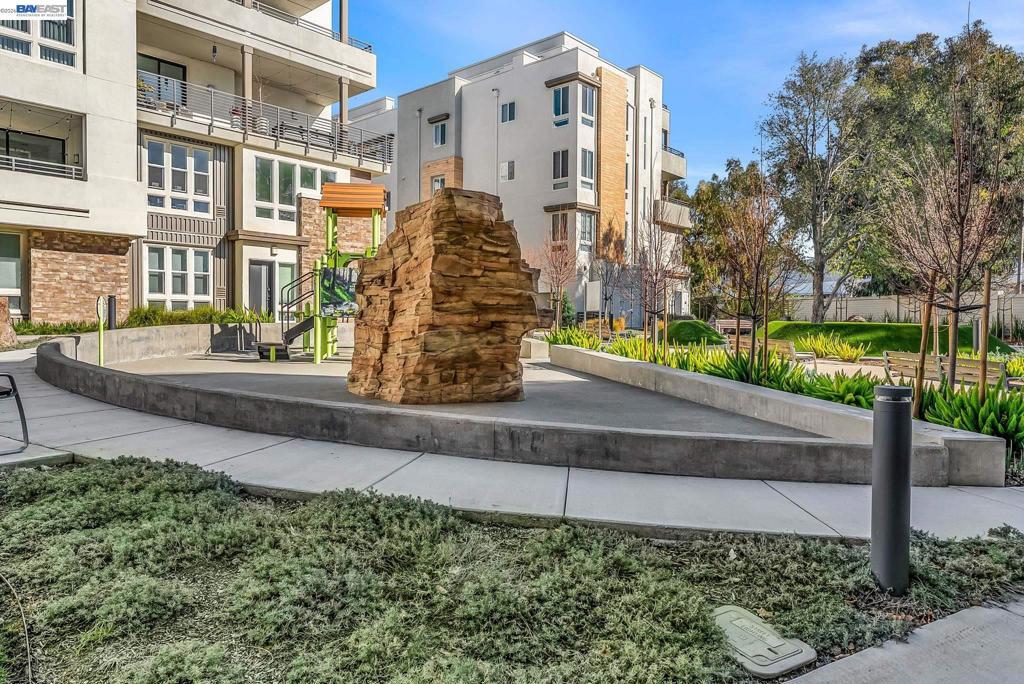 Luxurious modern condo built in 2022 with a dream kitchen, highly upgraded kitchen cabinets, countertops, backsplash, flooring and huge outdoor patio/balcony for BBQs, and lounging. Very spacious open concept kitchen, dining room, and living room with an office nook, the perfect size for remote working. The primary bedroom is a private, spacious, serene hideaway with a custom closet, dual sink, en-suite bathrooms. Side by side 2 car garage with easy access to the unit feels attached. Metro crossing located across Warm Springs Bart Station. Right outside the building's door, you will find a park, plenty of guest parking, and a beautifully cared for community with a pool and clubhouse.