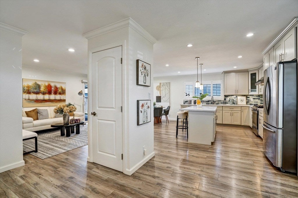 Charming single-story home located in the highly sought-after Marina Faire neighborhood. Beautifully updated 3 bed/2 bath, 1,128 lv sq ft of well-designed living space, combining comfort, style, functionality. Freshly painted interior, LVP flooring, dual-pane windows, shutters throughout, & recessed lighting. Open-concept kitchen ideal for both everyday living & entertaining, featuring a large center island for intimate gatherings, quartz countertops, tile backsplash, shaker cabinetry, SS appliances, & an adjoining dining area. Spacious living room looks out to the beautifully landscaped backyard, perfect for outdoor entertaining or quiet relaxation. Partially covered patio area for those summer BBQs, playdates, peaceful evenings, or just kids having fun, making the backyard a true extension of your living space. All bedrooms generously sized, & bathrooms thoughtfully updated for modern comfort. Home also features low-maintenance front w/ a partially enclosed front yard offering addt'l outdoor enjoyment & privacy. Located near the San Leandro Marina, Monarch Bay Golf Club, Bay Trail, shopping centers, supermarkets, & an array of dining options. Easy access to Alameda, the 880, BART, & Oakland Airport, this home offers the perfect blend of peaceful living & everyday convenience.