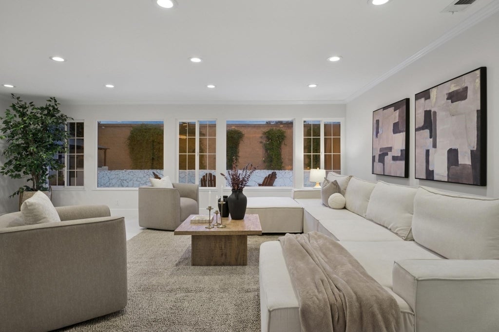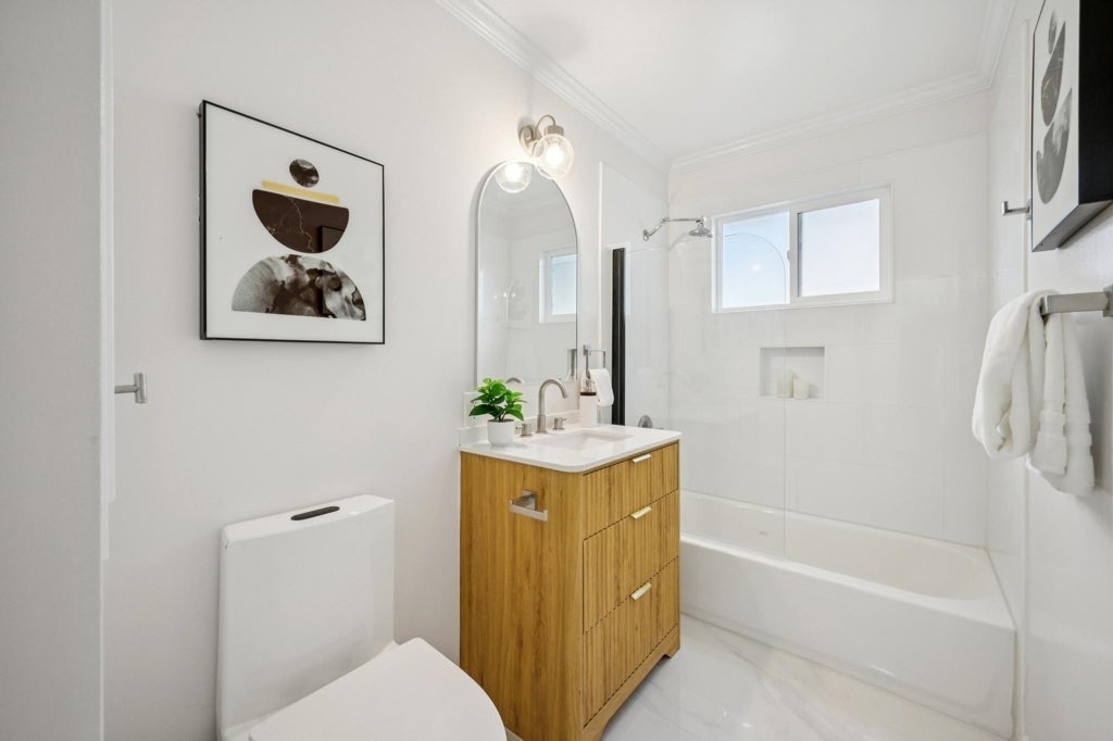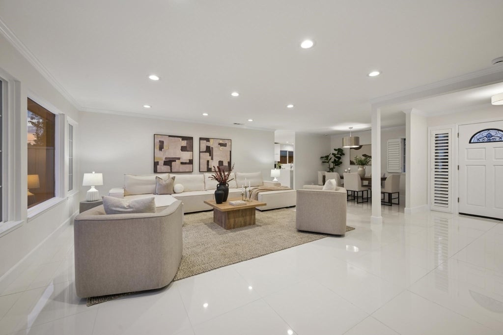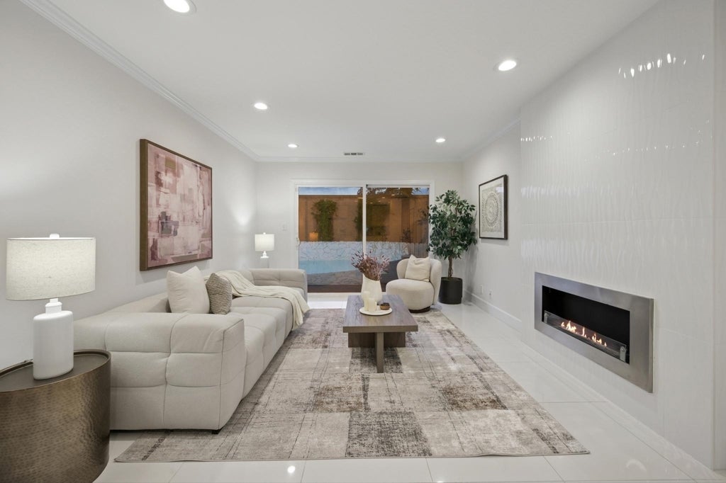 Discover this stunningly updated single-story home ideally located in the heart of Pleasanton. This 3-bedroom, 2-bath residence features expansive living and family rooms highlighted by sleek porcelain tile floors, oversized picture windows with serene backyard views, and a beautifully refreshed swimming pool. Refined touches such as crown molding and a modern clean-burning ethanol fireplace enhance the home’s stylish yet comfortable atmosphere, perfect for relaxing or hosting guests. The chef-inspired kitchen showcases quartz countertops, porcelain tile flooring, and an eye-catching waterfall island centerpiece. Additional improvements include two fully renovated bathrooms, recently updated flooring throughout, a recently replaced roof, upgraded HVAC ducting, and a recently installed water heater. Conveniently situated near highly regarded schools, parks, BART, major freeways, and endless shopping and dining options, this property is an exceptional opportunity for both commuters and families, with Stoneridge Mall and Muirwood Community Park just a short walk away.