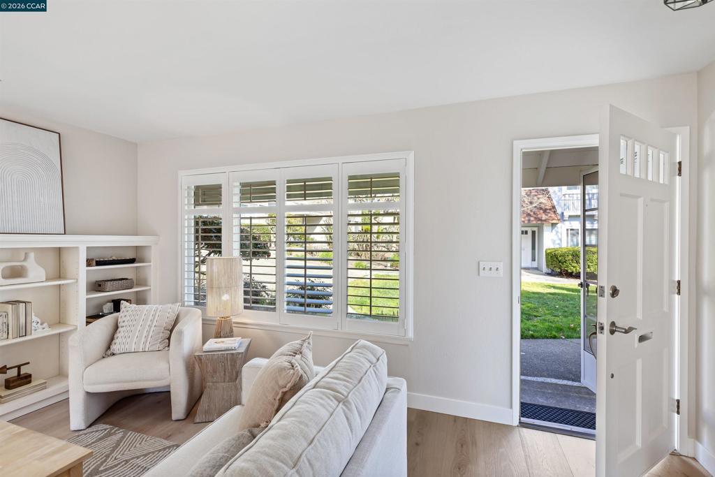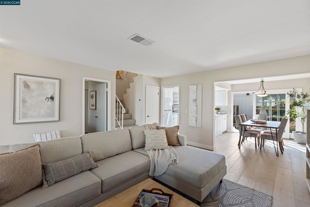 New Price! Welcome to this special Moraga neighborhood, which offers a quiet & serene retreat with attractive & private patio garden w/ paver. The home is light & bright w/ views of Moraga Hills from the bedrooms & lush gardens plus the enjoyment of Miramonte Gardens amenities. The Living Room offers plantation shutters, hardwood floors, fireplace flanked by bookcases w/ adjacent spacious dining room w/ sliding door that leads to private patio & garden. The kitchen has been updated w/ white cabinetry, hardwood floors, large tile counters – light & bright overlooking lush gardens. 3 Bedrooms (1 on main level w/ hardwood floors & plantation shutters – 2 large bedrooms on second level with adjacent bathroom) Bonus Room that could be used for office, playroom or storage plus separate laundry room. Additional features: Beautiful wood floors on the main level Recently installed carpet on upper level Separate Laundry Room w/ cabinets 2 carports nearby with storage Miramonte Gardens offers: HOA dues: $667.00 per month Offering: clubhouse, swimming pool, BBQ area & meandering paths. Located near Moraga Country Club, Sunday Farmer Market, Walking trails, Moraga Commons Park, Shopping & convenient access to BART freeways, top rated Moraga Schools & Acalanes High School District