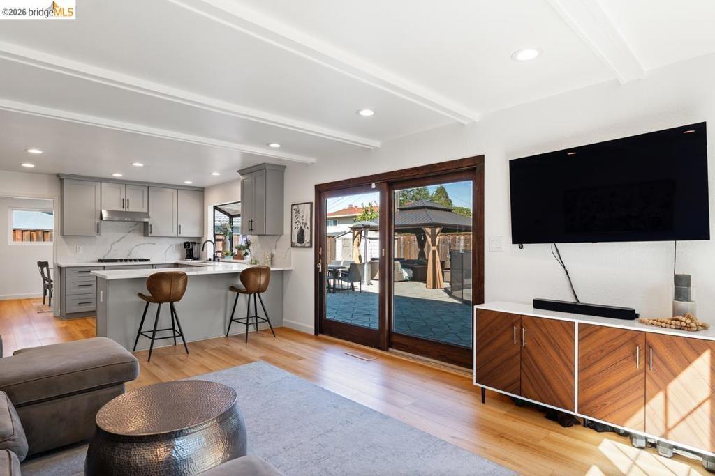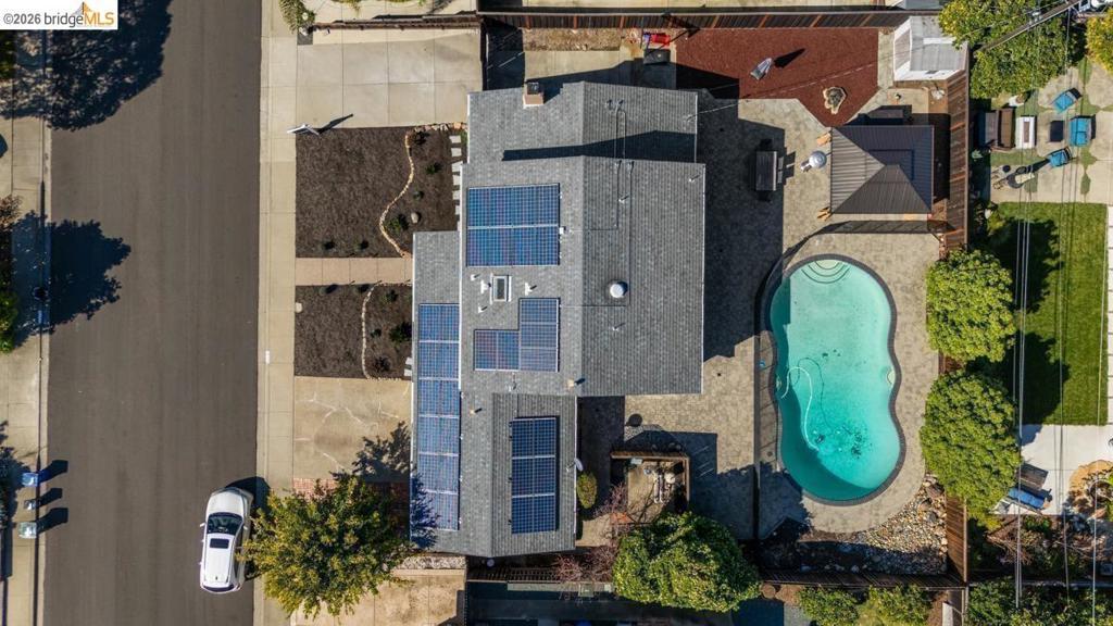 This is the one you've been waiting for! This beautifully updated home effortlessly blends modern design with eclectic charm, creating a warm and inviting space you'll love coming home to. With 4 spacious bedrooms and 2 full baths upstairs, plus a versatile bonus bedroom or office and a half bath downstairs, there's plenty of room for everyone to spread out and thrive. The remodeled kitchen is a dream come true for any chef, featuring double ovens, a gas cooktop, and endless storage, with natural light streaming through large windows and elegant wood-framed glass doors. Cozy up by the living room fireplace or host lively movie marathons in the expansive family room that flows seamlessly into the open kitchen. Step outside and prepare to fall in love with your very own private retreat. A sparkling in-ground pool beckons for summer fun, while the generously sized side yard-with vehicle access-offers space for an RV, boat, or extra parking. And with solar, you'll enjoy both energy savings and peace of mind. Nestled in a quiet neighborhood, this move-in-ready gem truly has it all.