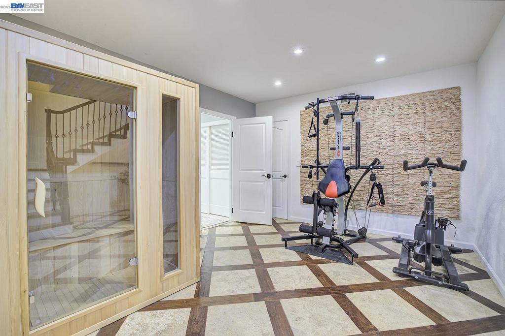 Elegant and Timeless Living with Flexible Spaces and an Elevated Setting. Beautiful North East–facing Craftsman home in Castro Valley offering a bright, open floor plan and flexible living spaces. The main level features four bedrooms and three-and-a-half bathrooms, complemented by a spacious kitchen with quartzite countertops, a gas range, stainless steel appliances, engineered wood flooring, recessed lighting, and updated bathrooms. Natural light fills the living areas, creating a comfortable and welcoming atmosphere. The lower level offers a private living area with a kitchenette and a bonus room, ideal for extended family or guests. Outdoor living is enhanced by a backyard with a Trex deck and a fully equipped outdoor kitchen, perfect for entertaining or relaxing at home. An elevated setting provides open hillside views, enhancing privacy, light, and a sense of space. Up to 400 square feet of additional bonus living space, offering extra flexibility for living, work or entertainment. Conveniently located within walking distance to an elementary school, and close to downtown Castro Valley, Lake Chabot Regional Park, BART, and major commuter routes including I-580 and I-880.