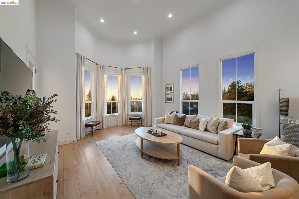 3/15 OPEN HOUSE CANCELLED. Commanding breathtaking, bridge-to-bridge Bay views, this exceptional Montclair Hills residence offers refined luxury living in a serene hillside setting. Encompassing approximately 3,425 square feet, the home features four bedrooms and four full bathrooms, thoughtfully designed with sophisticated finishes and a warm, modern aesthetic throughout. Walls of glass frame sweeping vistas from nearly every room, creating a seamless connection to the ever-changing beauty of the Bay. The primary suite is a true retreat, showcasing panoramic sunrise views enjoyed from the comfort of bed, a magnificent walk-in closet, and a spa-inspired bath with dual vanities, an expansive glass-enclosed shower, and a sumptuous jetted soaking tub. Three additional bedrooms on the lower level provide comfort and privacy, while an attached two-car garage adds everyday convenience. Perfectly positioned for both tranquility and access, 6194 Mazuela Drive offers a peaceful sanctuary just moments from the boutiques, cafés, and Sunday Farmers’ Market of Montclair Village, with easy access to Highway 13, downtown San Francisco, and miles of nearby hiking trails. A rare opportunity to experience elevated Bay Area living at its finest.