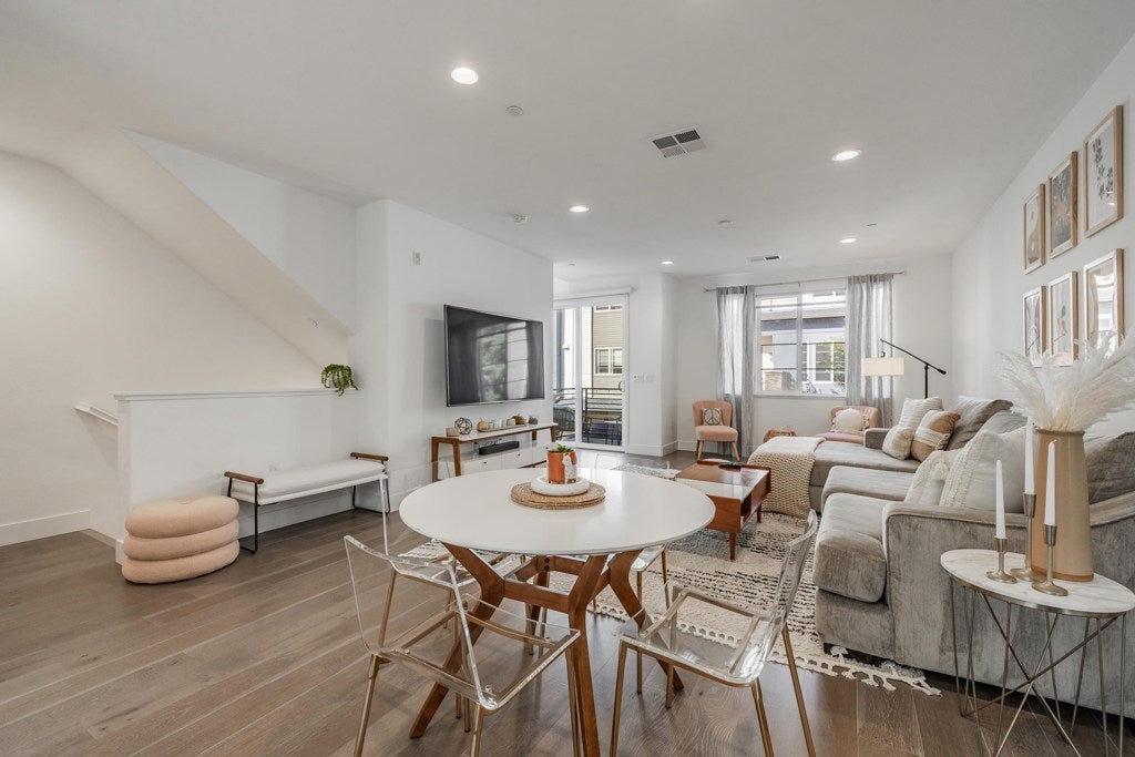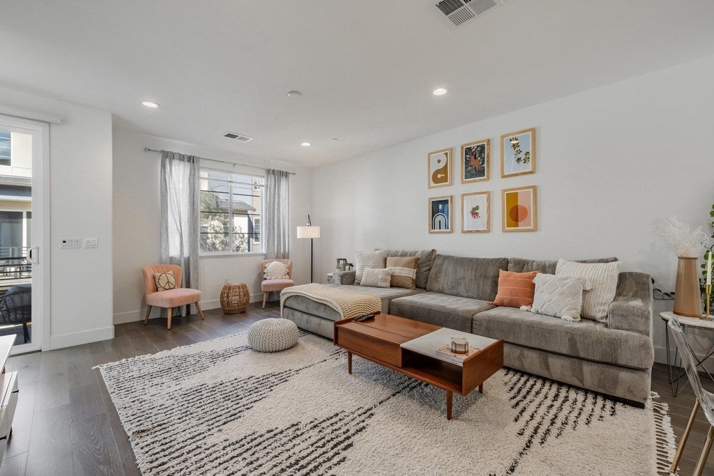 Beautiful 2020 built town home style condo.Nicely updated -move in condition.NW facing ample natural light through out. 2 large bedrooms with attached bathrooms.Den/Office/maybe 3rd bedroom down stairs.Finished 2 car attached garage with EV outlet-lots of visitor parking.Balcony on the 2nd floor. Amazing large kitchen with quartz counter tops -newer appliances -Hardwood flooring.The primary suite includes a spacious walk in closet.The smart home includes wireless internet readiness, dual zone A/C and heating. Seller has updated Blinds through out and very tastefully decorated.Hardly lived in home.Close to Golf course, shops, restaurants, freeway, BART.The laundry room is conveniently located on the 3rd floor with washer and dryer.Located in the sought after Prime at SOHAY community.