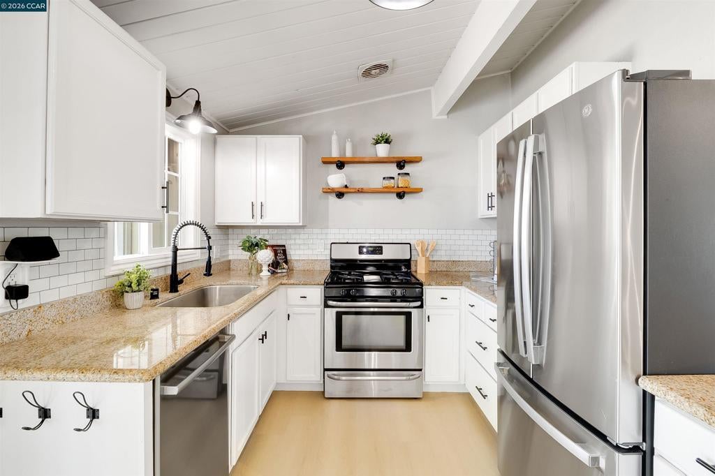 Open Saturday 4/11 2-4pm and Sunday 4/12 1-3pm! Modern upgrades, effortless style, and single-story living in the heart of Concord — 2261 Gehringer Dr delivers comfort and character in one beautifully curated package. Step inside to brand new flooring and baseboards flowing throughout, complemented by dual-pane windows and sliders that flood the home with natural light. The kitchen makes a statement with granite countertops and stainless steel appliances, while both bathrooms have been thoughtfully renovated with clean, modern finishes. Roof and Solar panels only a few years old with an EV charger bring efficiency into the spotlight. Vaulted open-beam ceilings with shiplap in the living room add just the right touch of architectural charm. Out back, the energy shifts into full-on entertainer mode with an open, inviting yard designed for gathering and unwinding, complete with a putting green and fire pit that turn ordinary evenings into something worth lingering over. All just minutes from downtown, I-680, and the always-loved Todos Santos Plaza — polished, practical, and carrying just the right amount of edge, this is Concord living done right.
