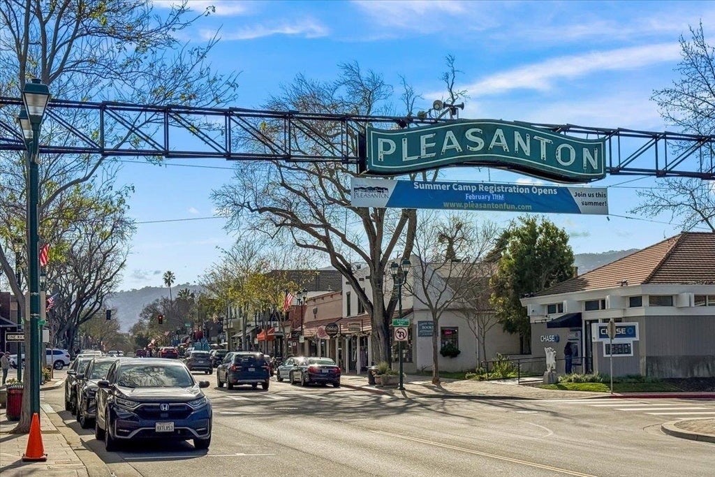 Superbly upgraded and meticulously maintained 3-bedroom, 2-bath single-story townhome. Remodeled kitchen with custom lighting, high-end white cabinets, quartz counters, and Bosch appliances. Custom lighting, hardwood flooring, and plantation shutters throughout. Beautifully remodeled bathrooms. Fenced front and backyards with pavers and lush landscaping. Retractable sunshade on the back patio. Finished two-car garage with heavy-duty shelving and a workbench. Only one shared wall, located in the garage, offers the privacy of a single-family home. Short walk to downtown Pleasanton and Farmers Market.