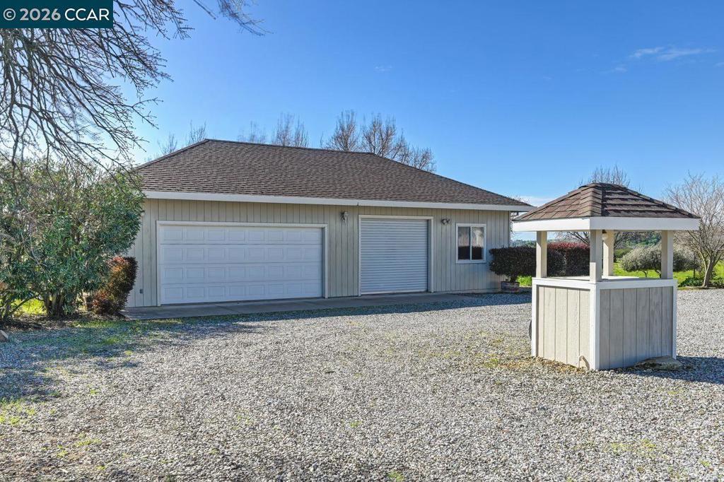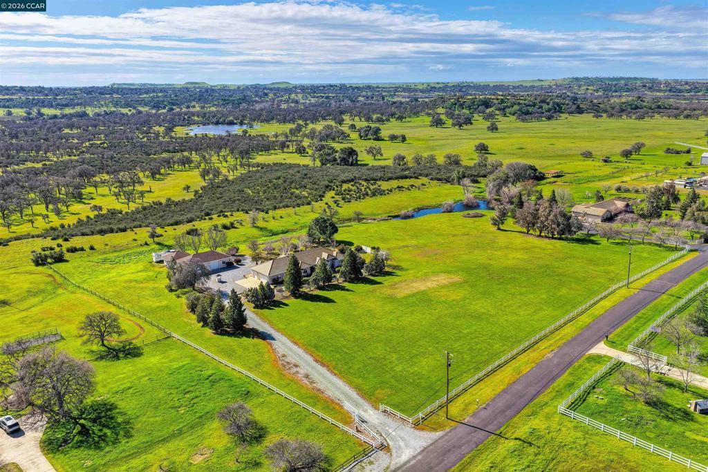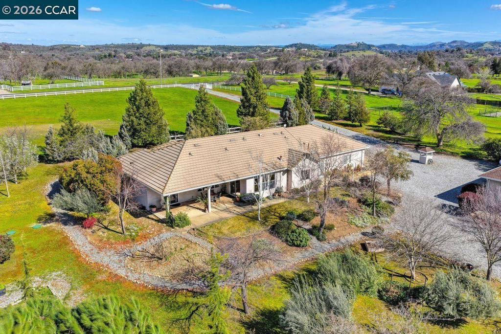 Welcome Home to country living in a desirable neighborhood, with 5.27 useable acres, a single level home, and garages for 8 cars! Entertain in style with open concept living and dining rooms. Relax in a spacious family room with a vaulted ceiling, fireplace, picture windows and access to a covered patio. The cheerful kitchen offers dual pantries and a large granite breakfast bar! A private primary suite offers a high ceiling, double closets and access to outdoors with serene vistas -and beautiful sunsets! Enjoy picturesque open pastures, olive and fig trees, succulent gardens and a seasonal creek -there is plenty of room to roam! Special features include an enclosed breezeway ideal for shaded relaxation, hobbies or gardening. And one garage offers a vehicle lift plus a workshop! This special property is located in the established '17 Arabian Ranch' community and has been lovingly maintained by one owner. Horses are allowed and there is great potential for ADU's. Valley Springs has abundant recreation with lakes, golf, charming nearby towns and wineries.