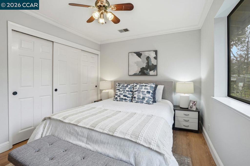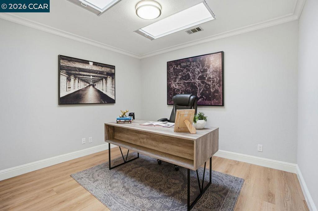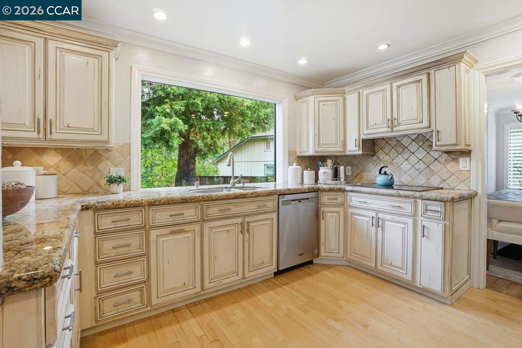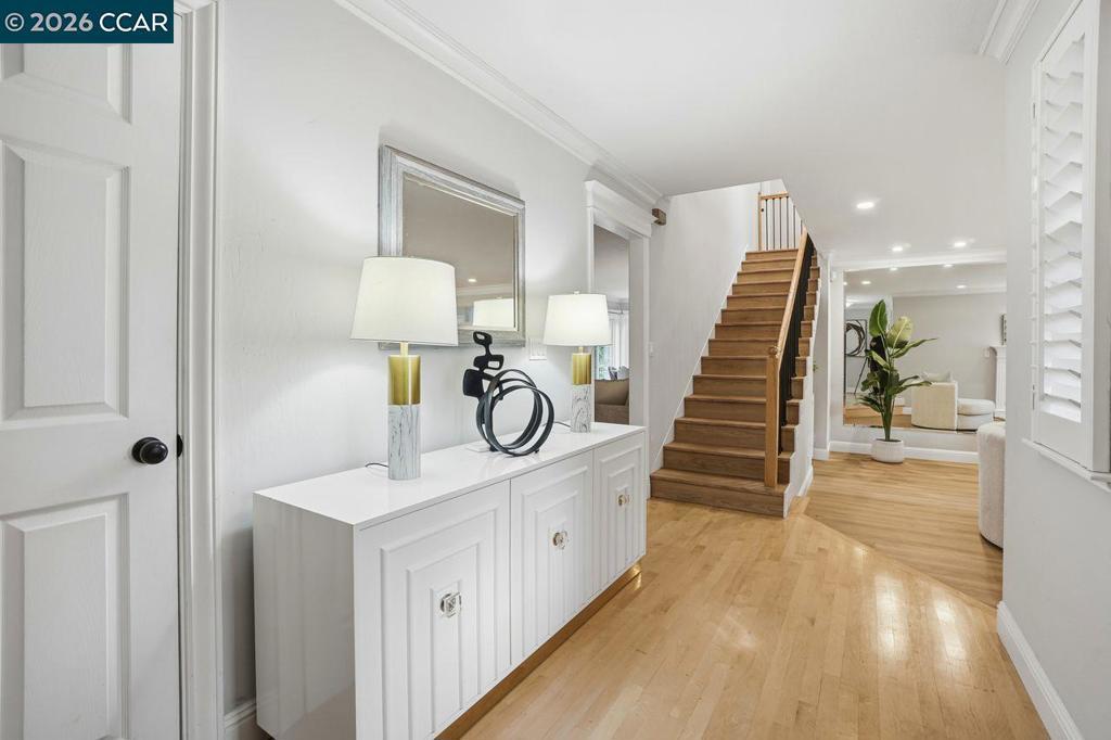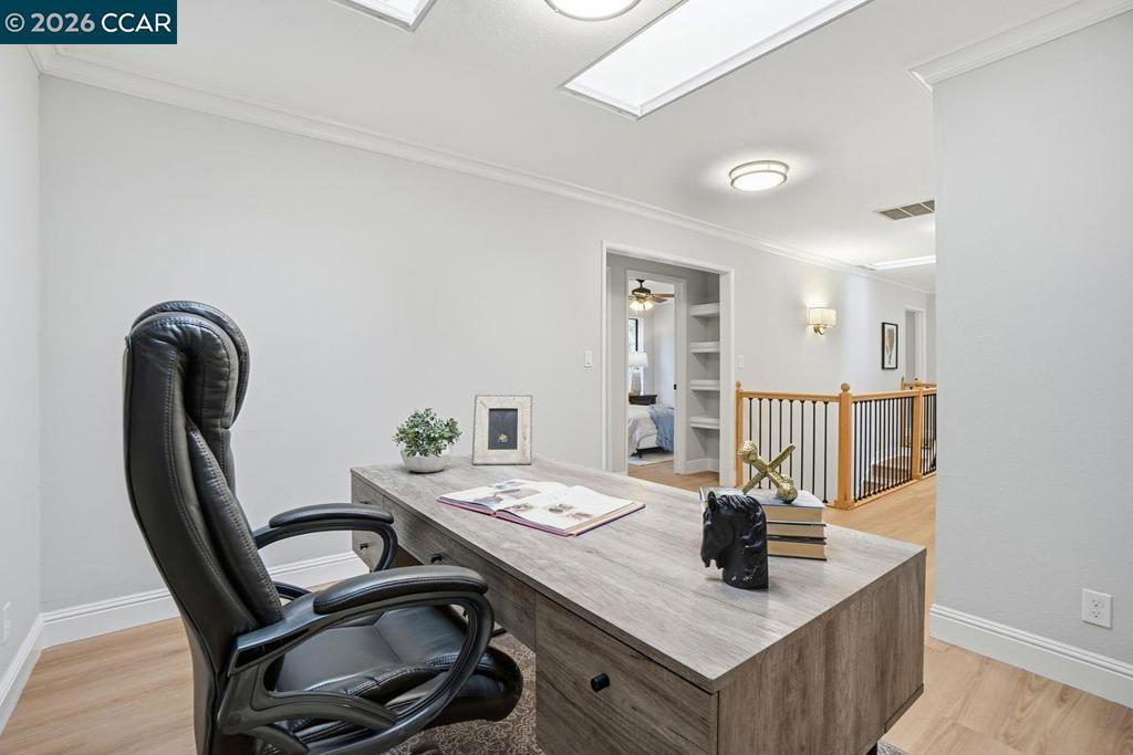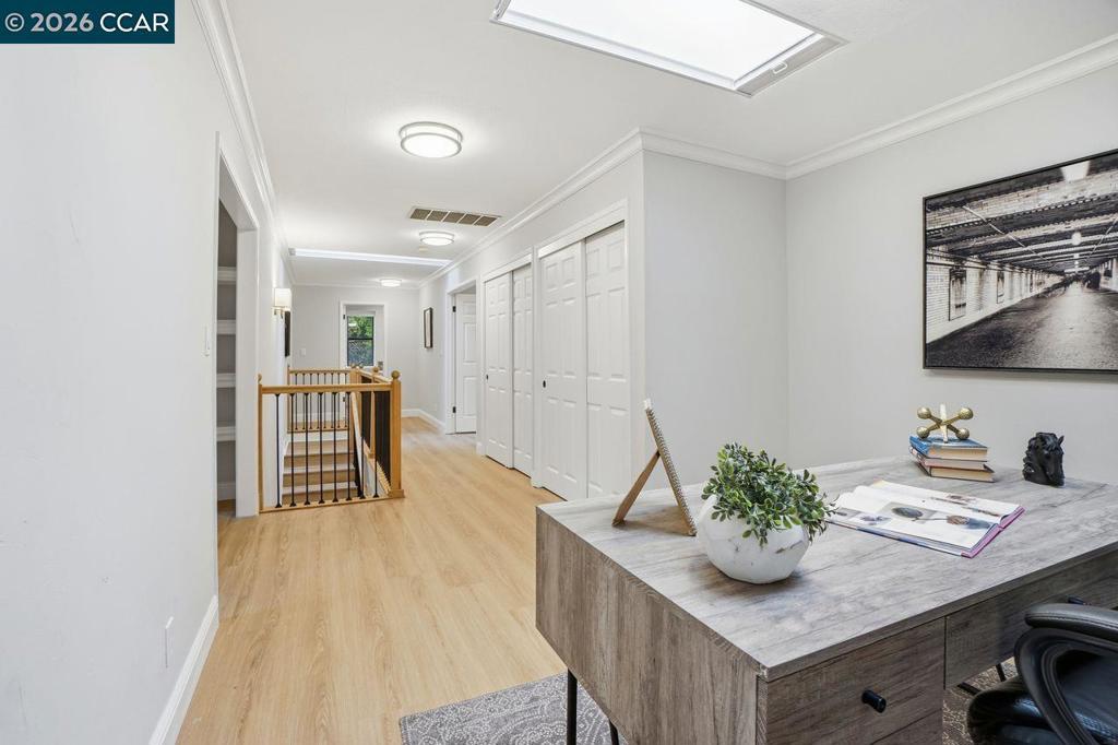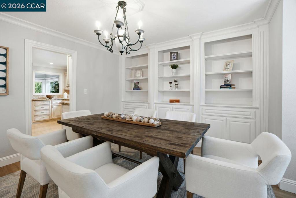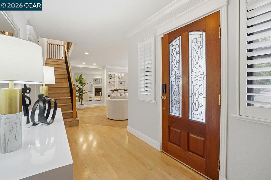 Welcome to this beautifully appointed home nestled on a quiet court in one of Lafayette’s desirable neighborhoods, served by award-winning Lafayette schools. Designed for both comfortable living and effortless entertaining, the main level features a spacious living room, inviting family room, formal dining room with elegant built-in cabinetry, and a bright kitchen with adjoining breakfast nook. A convenient laundry room and powder room complete the downstairs layout. Hardwood and luxury vinyl plank flooring flow throughout, adding warmth and style. Large sliding glass doors frame picturesque views of the park-like backyard and create seamless indoor-outdoor living. Upstairs, you’ll find 4 specious bedrooms plus a versatile loft/bonus area—ideal for a home office, study zone, or relaxing lounge. Skylights and abundant windows fill the home with natural light. The expansive primary retreat offers a peaceful sanctuary with a walk-in closet and ample space to unwind. Enjoy an exceptional lifestyle just moments from Brookwood Park and the scenic trails of Briones Regional Park. With easy access to downtown Lafayette, downtown Walnut Creek, and Palos Verdes Shopping Center—featuring a local market, shops, and restaurants—this location perfectly blends tranquility with convenience.