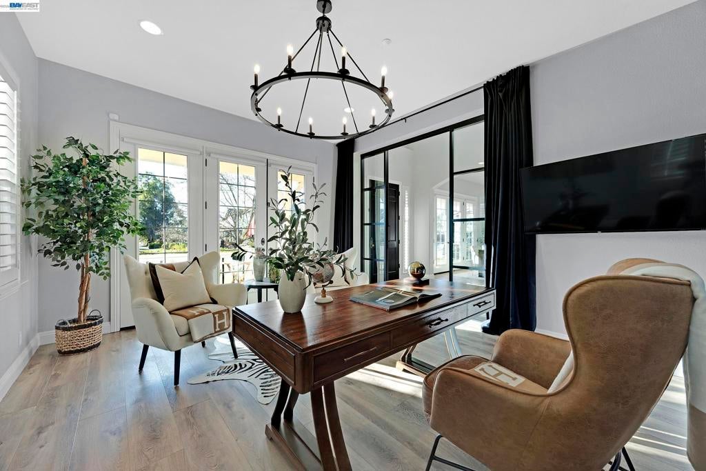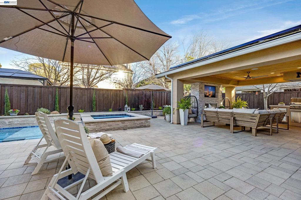 Reimagined with over $600k permanent value upgrades, this lifestyle-forward property delivers exceptional versatility. Main level features a dining room, family room, kitchen w/butler’s pantry, half bath, custom office with estate-style sliding glass doors, and fitness room, convertible to a 5th bedroom. Upstairs offers 2 bedrooms, hall bath, guest ensuite, primary suite, and open loft. The gourmet kitchen showcases Thermador and KitchenAid appliances, gas cooktop, quartz counters, waterfall island, wine refrigerator, and breakfast nook. New floors, updated lighting, custom closets, and window coverings elevate the modernized interior. The 600+ sq ft pavilion with cedar roof offers dining and dual living areas anchored by a dramatic 2-sided fireplace. Built-in outdoor kitchen with Dekton counters, premium appliances, integrated audio, TVs, fans, and recessed lighting enhances year-round entertaining. The pool, raised spa, outdoor bathroom, and putting green inspire relaxation and recreation. Owned solar, pool solar,battery storage, EV charging, heat pump HVAC, and water systems reduce operating costs while robust security promotes peace of mind. A rare opportunity to own a comprehensively upgraded lifestyle property with enduring value. Close to Livermore's distinguished schools.