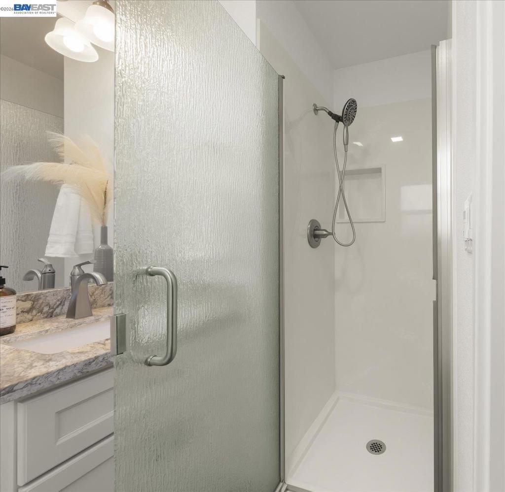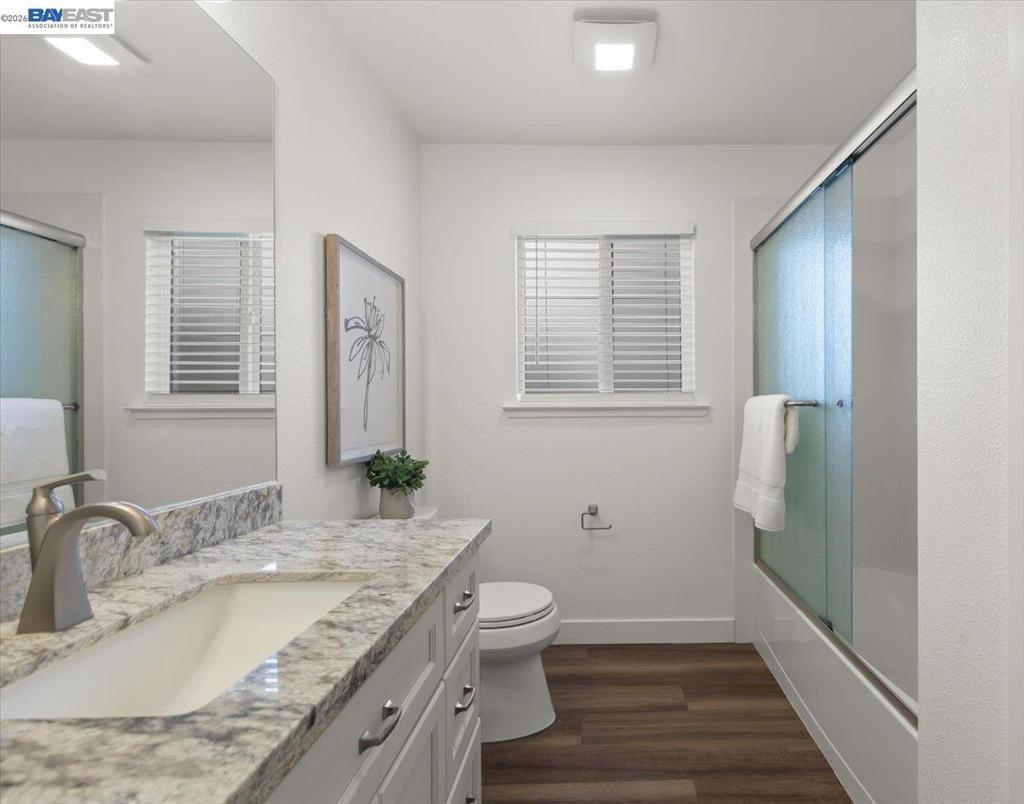 Perfect starter home or investment property! This beautifully updated home (remodeled in 2020) features a modern kitchen equipped with stainless-steel appliances including a refrigerator, dishwasher, and gas range/oven, granite countertops, stainless steel sink, new faucet, and new cabinetry. Enjoy waterproof flooring throughout, updated HVAC, water heater, dual-pane windows, window blinds, and ceiling fans with lights throughout the home. Both bathrooms have been tastefully updated, The bonus room in the back includes a closet and can easily be used as a 4th bedroom. Interior and exterior paint, gutters, and roof were all replaced in 2020. The garage features finished walls and an automatic door opener. Owned Solar with backup battery installed in 2023, offering energy savings without additional payments. Low-maintenance front and backyard landscaping includes large side access with space for a vehicle and RV parking in front, a large shed in the back, a peach tree, and a convenient dog run along the side yard. Conveniently located near Freeway 880 and the Dumbarton Bridge, approximately 10 minutes to BART, with bus stops nearby and shopping within walking distance. Birch Grove Elementary is the school for this location.