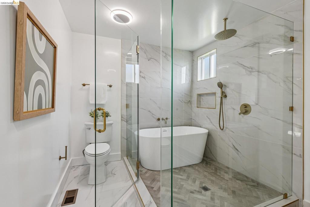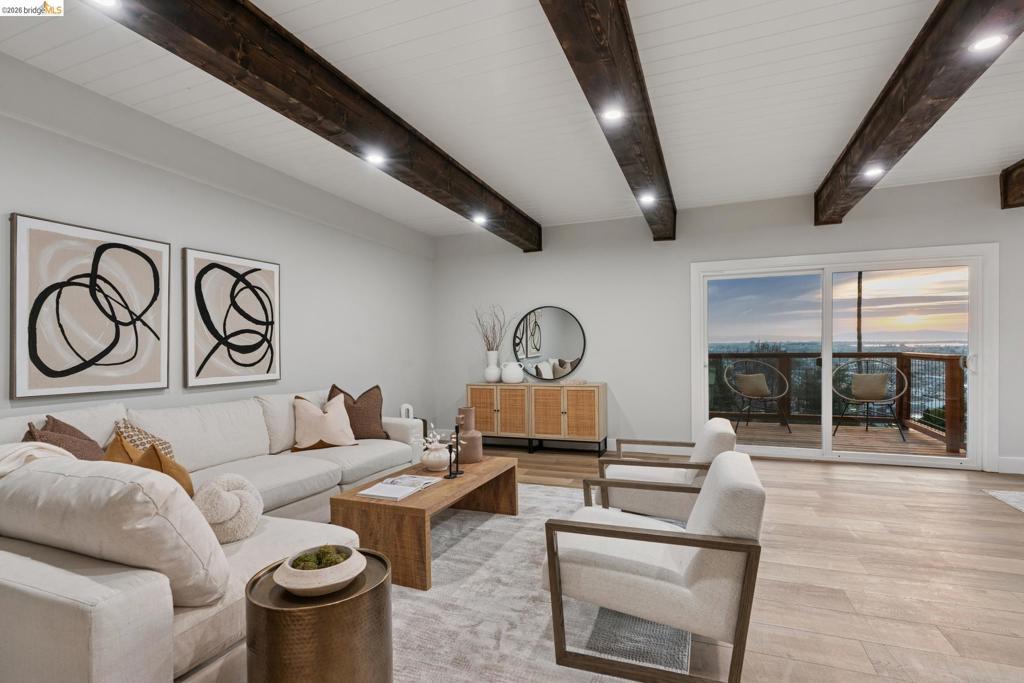 With swoon worthy views, an abundance of space and natural light, and a free flowing, practical floorplan, this stunning 4bd/4ba home with an attached 1bd/1ba ADU is not to be missed! Designed to live large, the spacious & cheerful eat-in kitchen with brand new appliances, a large island for entertaining & fab sightlines throughout the main level, that is open to the cozy living room anchored by a statement fireplace. A few steps away is the grand family/dining room combo with sweeping bay views from every angle, beautiful, beamed ceilings & great indoor/outdoor flow to the first & largest deck, perfect for relaxing and enjoying your nightly backdrop of our beautiful Bay Area sunsets! Also on the main level, you have a bedroom, full bathroom and garage access. Downstairs you have a generously sized primary suite with a large, spa-inspired bathroom, a walk-in closet & a sliding glass door to a private deck. A bonus family room/flex space with a laundry closet & two nicely sized bedrooms, both with beautiful en-suite bathrooms. The bottom level, charming & brand new 1/1 ADU has internal and exterior access, providing greater flexibility for how you utilize the additional space. The large, fenced in backyard is ready for all your play, gardening & outdoor entertaining customizations Views: Downtown