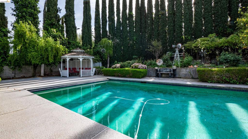 This spectacular 3-bedroom, 2.5-bath single-story residence offers luxurious living with 3389 sq. ft. and 3 fireplaces. The backyard has a gorgeous pool and lovely gardens to explore it has been completed and designed for outdoor living and entertaining, providing a gazebo for relaxation or gatherings. This home is situated on over one acre and has a 3-car attached garage and an additional large shop with a detached 2-car garage in the rear. The property has several fruit trees and many rose bushes with a well for irrigation and city water for the home. Freshly painted exterior with a newer tile roof. The eat-in kitchen has a sliding glass door leading to the patio, 2 ovens, and tons of cabinets for storage. Formal living and dining rooms, and an office with glass-paneled French doors off the entry. Dual zone AC and much more, must see to appreciate.
