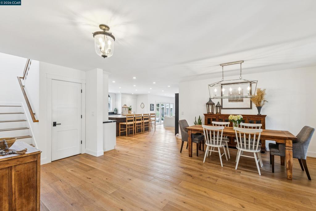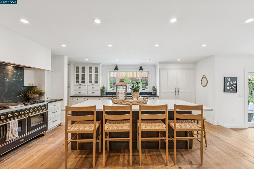 Located on a coveted cul-de-sac in the Diablo West neighborhood, this warm and inviting 5 bed, 3 bath home showcases designer finishes and is ideal for everyday living and gatherings. A brick paver walkway leads to a charming front porch. Inside, a spacious entry opens to the living and dining rooms with engineered wood flooring throughout the main level. The designer kitchen is the heart of the home, featuring a large marble island with ample seating, a 60-inch, 9-burner Italian designer range, dual fridge/freezer, and thoughtfully selected finishes. The butler’s pantry offers the perfect space for coffee service and beverage storage. The kitchen opens to the family room with built-in cabinetry and a fireplace. French doors lead to a patio and lush backyard with a sparkling pool and updated paver pool deck. A main-level bedroom and updated full bath with direct pool access offer flexible living options. Upstairs, the primary suite includes a beautifully updated bath with soaking tub, shower, and walk-in closet. 3 additional bedrooms are located off the hallway, along with a remodeled bath and spacious laundry room. Upgrades include: 3 car garage, newer HVAC, water heater, roof, pool equipment, windows, and exterior siding. Close to green belts, downtown and top rated schools.