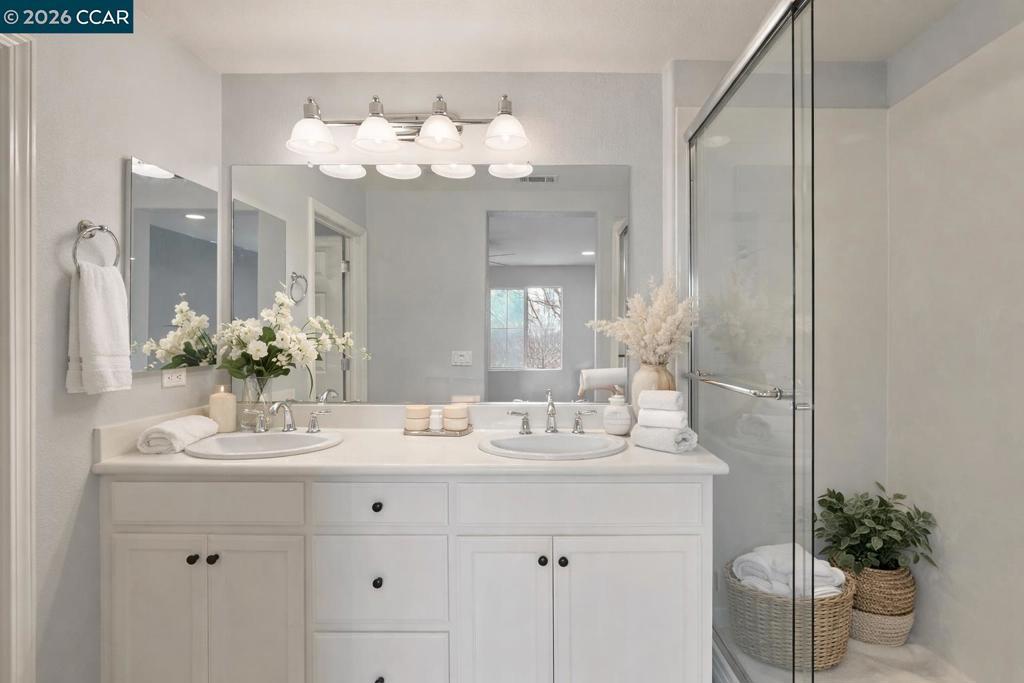 Welcome to your dream home, a beautifully maintained corner-unit condo offering comfort, style, and exceptional privacy in Livermore. This thoughtfully designed residence features two spacious primary-suite-style bedrooms, each with its own en-suite bathroom, providing comfort and convenience for all. You’ll also enjoy a versatile loft that can serve as a media room, playroom, or additional living space to suit your needs. In addition, a dedicated study area or work nook makes working from home both practical and comfortable. The open and bright main living area is filled with natural light, creating a warm and inviting atmosphere. The kitchen is perfect for everyday living and entertaining alike, featuring a large center island, granite countertops, stainless steel appliances, tile flooring, and a generous pantry. The kitchen seamlessly overlooks the dining and living areas, making gatherings with family and friends effortless. Interior photographs have been virtually staged for illustrative purposes only. Furniture and décor are digitally added and may not reflect the actual size or layout. Easy access to Highways 580 and 84, and a nearby BART station. Livermore offers award-winning wineries, great dining, shopping, and access to major tech hubs.