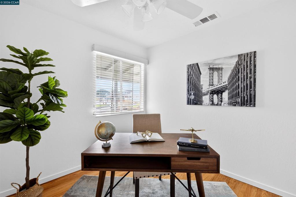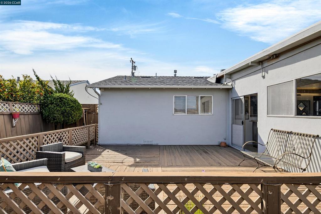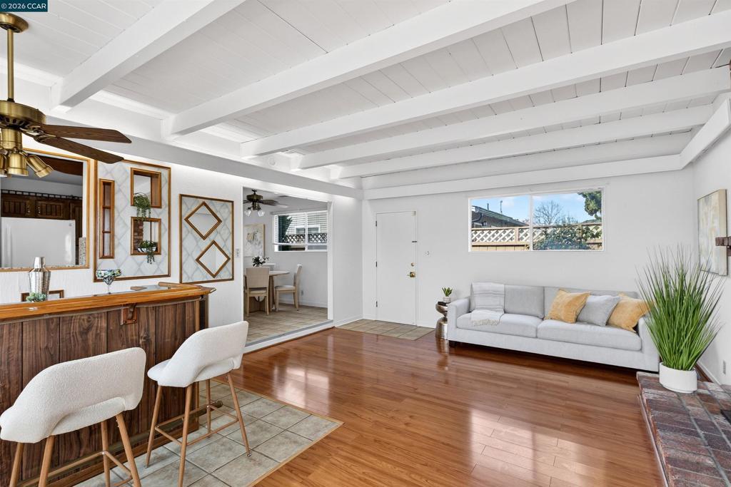 Welcome to this charming single-story home offering comfort, character, and versatile living spaces in a convenient San Leandro location. Featuring 3 bedrooms, 2 bathrooms, and approximately 1,459± sq ft of living space, this inviting residence blends timeless details with everyday functionality. Step inside to discover warm hardwood flooring, abundant natural light, and a spacious living area highlighted by a classic brick fireplace. The open concept kitchen features beautifully customed cabinetry, ample cabinet and counter space, and a breakfast bar for addtional seating. The kitchen opens to the dining room, providing a space to gather and enjoy a meal together. The large family room gives you the indoor-outdoor feel, leading to a spacious backyard deck, perfect for hosting or enjoying sunny summer days. The comfortable bedrooms offer flexibility for family, guests, or a home office, while the primary suite provides a peaceful space. The thoughtfully designed layout includes multiple gathering spaces ideal for relaxing or entertaining. Additional features include a two-car garage, one-story layout, and a location close to local parks, the marina, shopping, commuter routes, and everyday amenities. A wonderful opportunity to own a well-maintained home — don’t miss it!