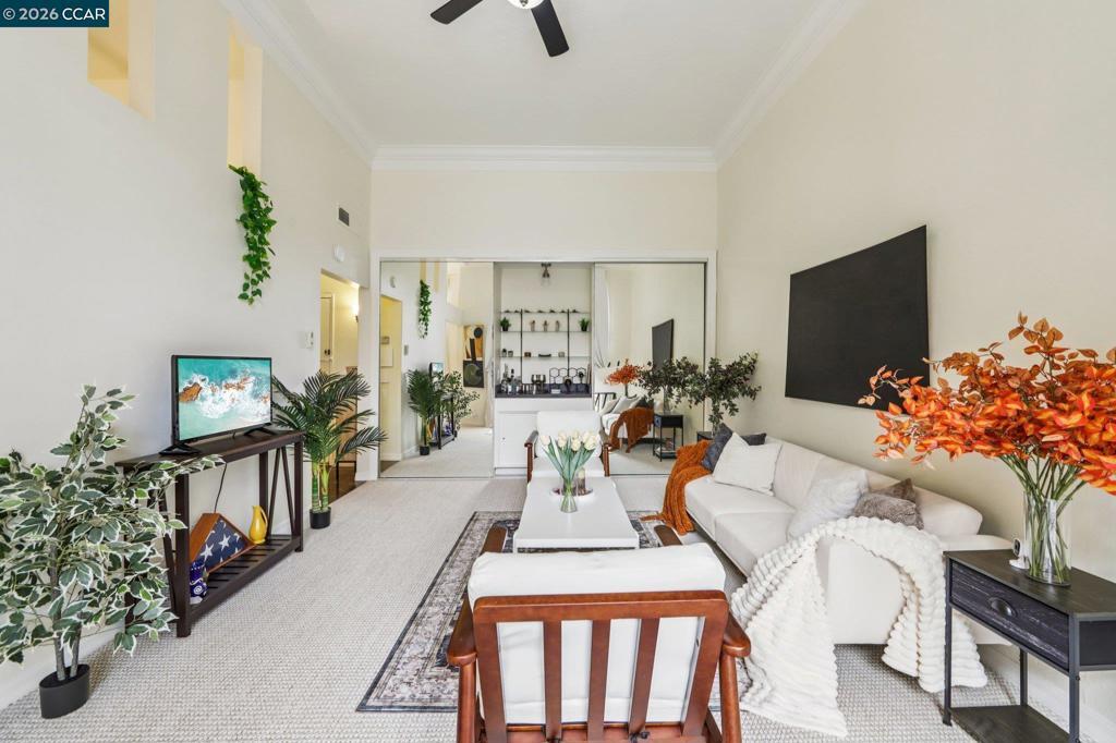 Experience elevated, resort-style living in the heart of Walnut Creek at the iconic The Keys Community. This stunning and spacious 1 bed, 1 bath condo showcases a rare 12-foot soaring ceiling, a premium feature offered in only a select handful of units, creating a dramatic, loft-like feel that instantly sets it apart. Floor-to-ceiling windows pour in natural light, highlighting the beautifully opened-up layout and giving the home an airy, expansive vibe. The updated kitchen and bathroom offer stylish comfort, while thoughtfully modified walls and openings enhance flow and functionality. Step outside to your patio and shared courtyard, which is an incredible extension of your living space and perfect for entertaining, relaxing, or enjoying peaceful mornings and evenings. The Keys is known for its vibrant, friendly atmosphere and unbeatable amenities like a fully equipped gym, tennis and squash courts, multiple pools with BBQ areas, billiards room, movie room, and more.