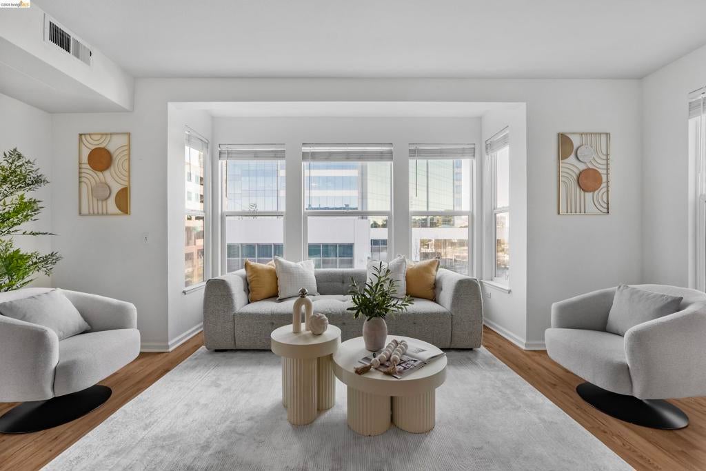 Sophisticated light-filled 2 bedroom, 2 bathroom, move-in ready condo located in the award-winning Landmark Plaza. Offering refined urban living in one of downtown Oakland’s best locations. Set within a gated complex that’s centered around a beautifully landscaped courtyard blending historic Victorian character with contemporary design. This bright and airy residence features an open layout with expansive windows framing city outlooks and views toward Lafayette Square. The spacious living and dining areas are ideal for both everyday living and entertaining. The modern kitchen offers stainless steel appliances and ample cabinetry. While the updated primary suite features a walk-in closet with built-in storage and en-suite bath. A second bedroom provides flexibility for guests, office, or creativity. In-unit laundry and secured garage parking add convenience. Incredible 97 walk score and 91 bike score! (per WalkScore.com) Enjoy immediate access to downtown Oakland’s vibrant dining, cafes, weekly farmer’s market, Old Town, Uptown entertainment district, Jack London Square waterfront, and SF ferry. With BART just blocks away and easy freeway access, commuting throughout the Bay Area and to San Francisco is seamless. Don't let this opportunity pass you by!