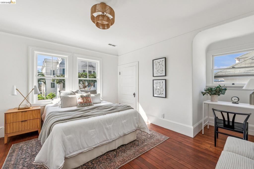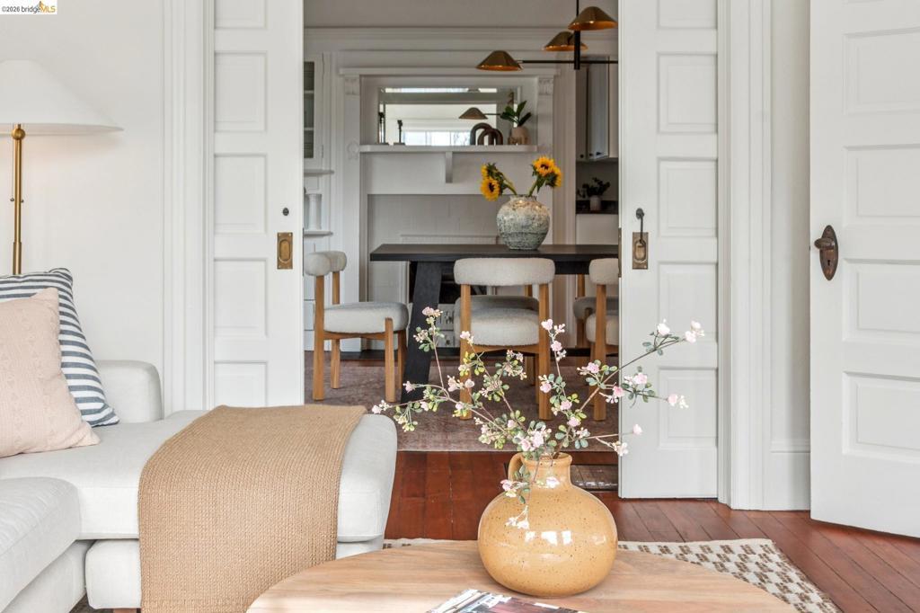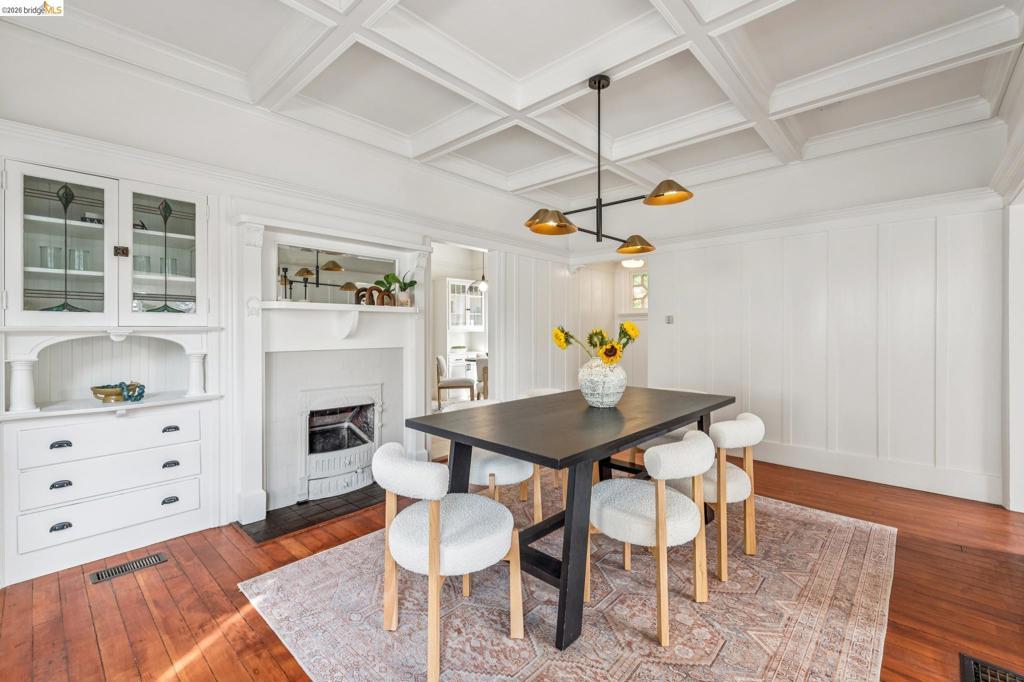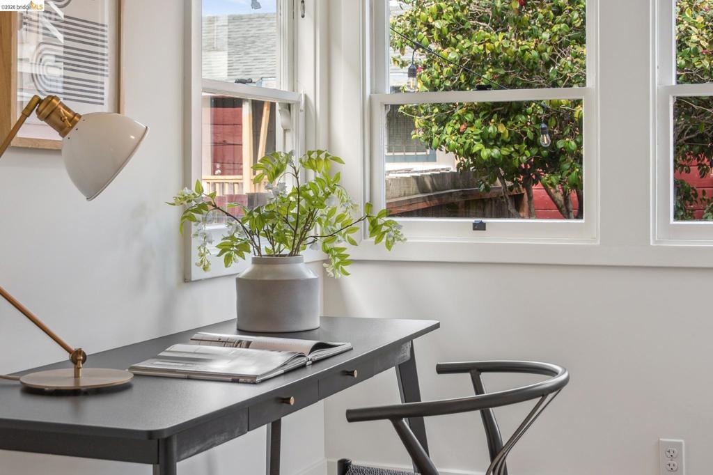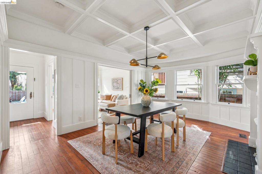 836 E 19th is a stunning Victorian-era home with classic character and modern comfort. Timeless details include coffered ceilings, wainscoting, and stained glass. The dining room features original built-ins and a box-beamed ceiling. The formal living and dining rooms both enjoy great natural light and an open flow, providing flexible space for everyday living and entertaining. The inviting kitchen is adjacent to a sunlit breakfast nook with a charming built-in cabinet, plus a dedicated office just off the kitchen and a separate laundry room with sink for added convenience.Upstairs are three light-filled bedrooms, including a spacious primary with built-in alcove seating, that share a full bath with clawfoot tub and shower. A detached garage offers excellent storage or potential workshop space. Located in Oakland’s Clinton neighborhood near cafés, dining, and Lake Merritt, approximately 0.6 miles away. Two great spots, Xochi the Dog Cafe and Champa Garden, are both just blocks away.