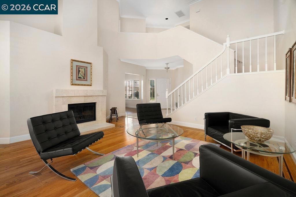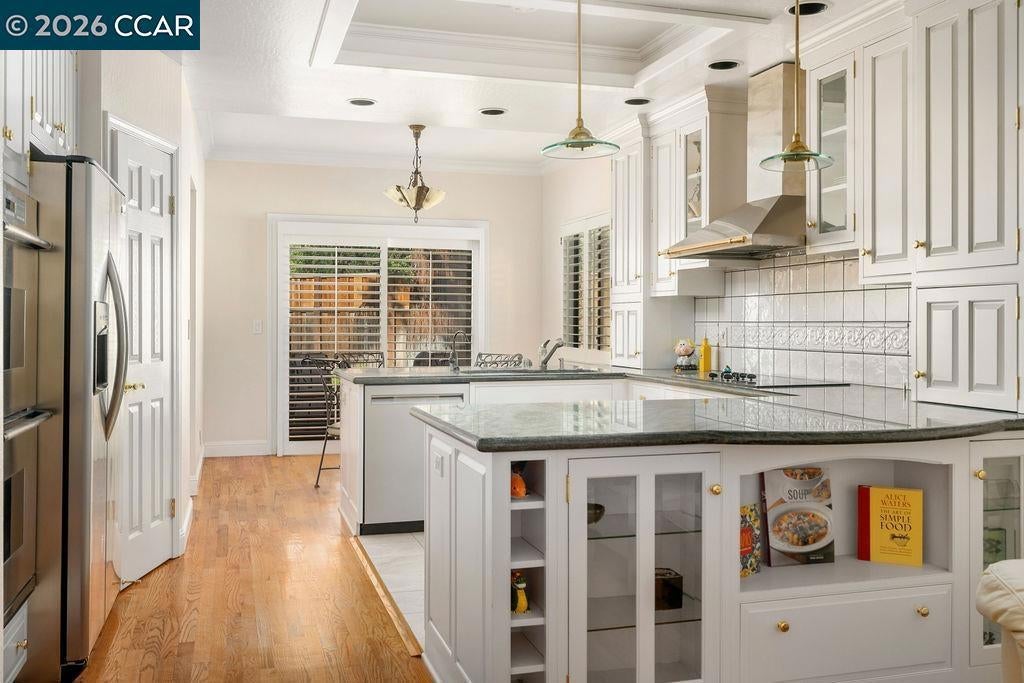 This end-unit is located on an oversized, north-east facing corner lot with a manicured yard in Danville’s gated Blackhawk community. Extensively upgraded with substantial structural investment beyond cosmetic improvements, the home features a brand-new roof and a new energy-efficient HVAC system, offering long-term ownership stability. The interior showcases true solid oak hardwood flooring with custom walnut inlays, crown molding and baseboards throughout. High-end Crema Marfil marble enhances the entryway, fireplace mantel, and entire primary bathroom. The kitchen includes a new dishwasher and high-end appliances. All bathrooms are fitted with Kohler toilets. Exterior improvements include a newly stained waterproof deck, oak fencing, and a pressure-treated retaining wall. The finished garage features durable rubber flooring. Includes Section 1 termite clearance. Located near Blackhawk Plaza and top-rated schools, this property combines major capital improvements with refined custom finishes.
