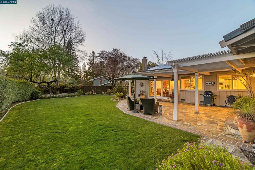 Ready for its next chapter, 614 Thornhill is a thoughtfully updated home in the desirable Diablo West neighborhood. This 3-bedroom + office and 2 bath home offers flexibility, comfort, and a layout that truly works for everyday living. This home is also equipped with solar panels, 3 car garage with extra storage space, and a side yard with a garden bench and tool shed. Hardwood floors run through the main living areas, anchored by a tile entryway that creates a welcoming first impression. Both bathrooms have been updated with quartz countertops, custom tile, and finished laminate flooring for a clean, modern look. The remodeled kitchen offers clean finishes, ample cabinetry, a breakfast bar, and a built-in coffee bar. It opens directly to the family room with access and views to the spacious and landscaped backyard. This layout keeps the backyard in view and makes everyday living feel open and connected. Just off the entry is a formal living room and french doors that lead to an office, which can also be converted to a formal dining room. The primary bedroom with an updated en-suite bathroom has sliding door access to the backyard and spa. The backyard is expansive, private, and peaceful. Close proximity to downtown Danville and schools.