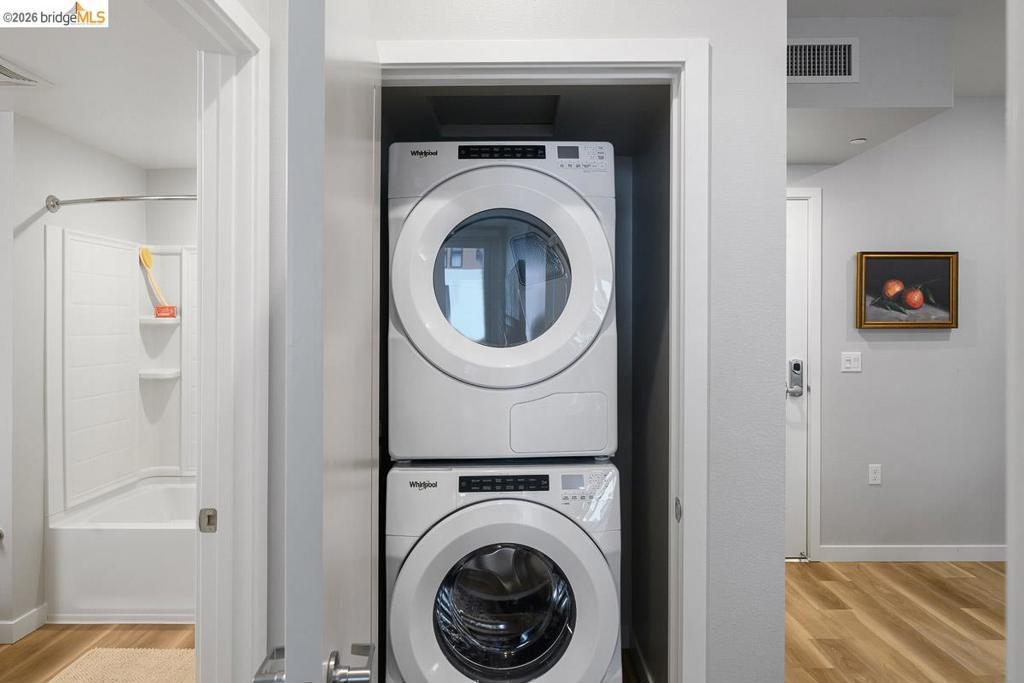 Now Selling at Caspian Residences at Brooklyn Basin - Discover modern waterside living in this thoughtfully designed south-facing 1-bedroom, 1-bathroom condo with a balcony, spanning approximately 703 sq ft. Located in one of Oakland’s most exciting new communities, this home offers a rare chance to own in a vibrant, amenity-rich setting. The open layout features sleek finishes, a well-equipped kitchen with Samsung stainless steel appliances, quartz countertops, and modern cabinetry. High-efficiency dual-pane windows frame the bright living area, while the bathroom includes quartz counters and Grohe fixtures. Includes in-unit washer and dryer. Caspian residents enjoy landscaped courtyards, a game room, a fitness center, co-working spaces, and rooftop lounges with panoramic views. Situated on Oakland’s revitalized waterfront at Brooklyn Basin, the community provides direct access to parks, dining, and recreation, with Jack London Square, BART, and ferry service to San Francisco just minutes away. Includes one parking space. All images are representative of the development and may be of a similar unit.