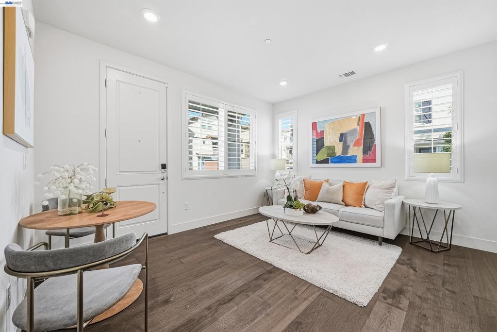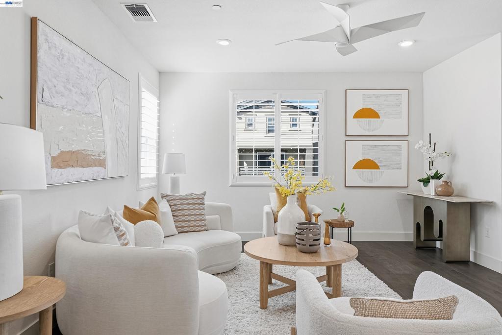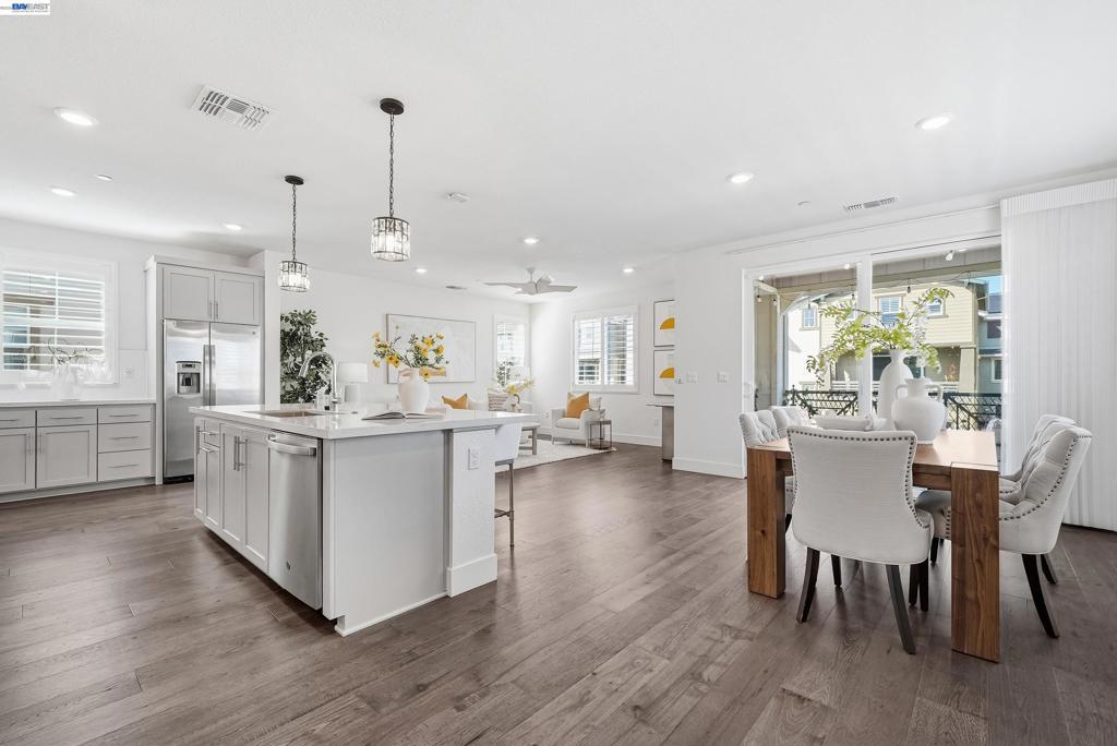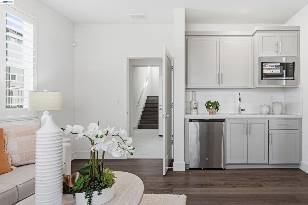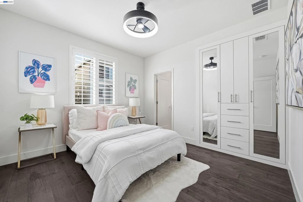 Nestled in the Bridgeway community, this corner-lot residence redefines luxury with its sought-after Bungalows Plan 2 layout. The home offers 4 B/4.5B. One standout feature is the ground-floor suite, complete with its own private entrance, cozy living area, kitchenette, and dedicated laundry room. It is ideal for hosting guests, accommodating extended family, or creating a serene retreat. Upstairs, the master suite is a sanctuary in its own right, bathed in natural light and boasting a custom-designed walk-in closet with a bespoke cabinet system. Another generously sized suite on the second floor adds to the home’s allure, providing both comfort and privacy. Engineered hardwood floors flow throughout, paired with elegant upgraded shutters and Hunter Douglas drapes. The gourmet kitchen features an oversized island with premium finishes, top-of-the-line stainless steel appliances, and a spacious pantry. With two laundry rooms and customized closets, convenience meets luxury at every turn. Enjoy your covered patio and landscaped yard, perfect for morning coffee or evening gatherings. Nearby Don Edwards San Francisco National Wildlife Refuge offers open space with trails and nature to explore. Easy access to the Dumbarton Bridge and I-880.