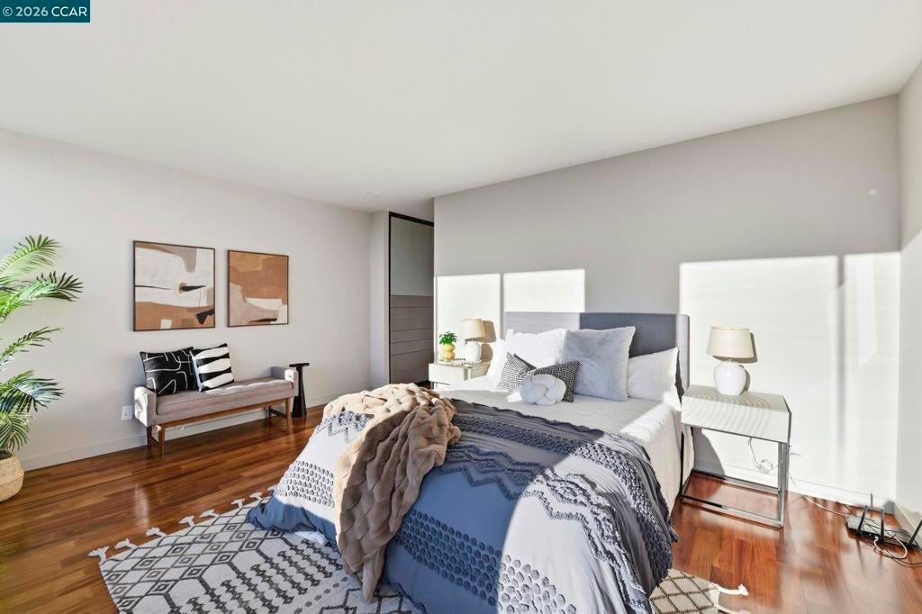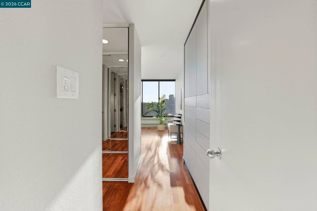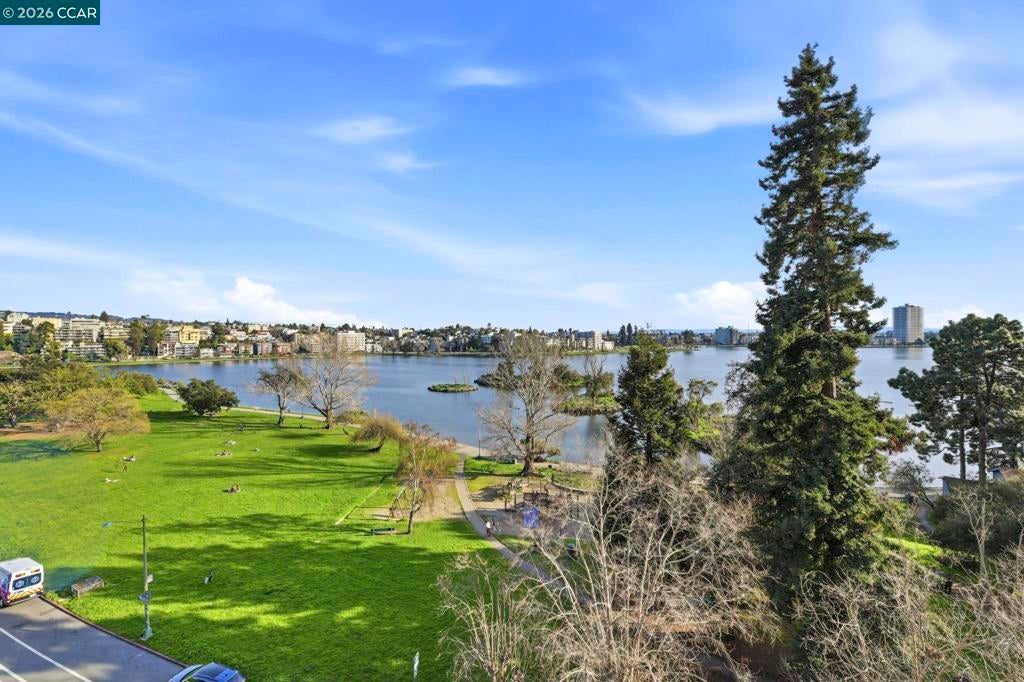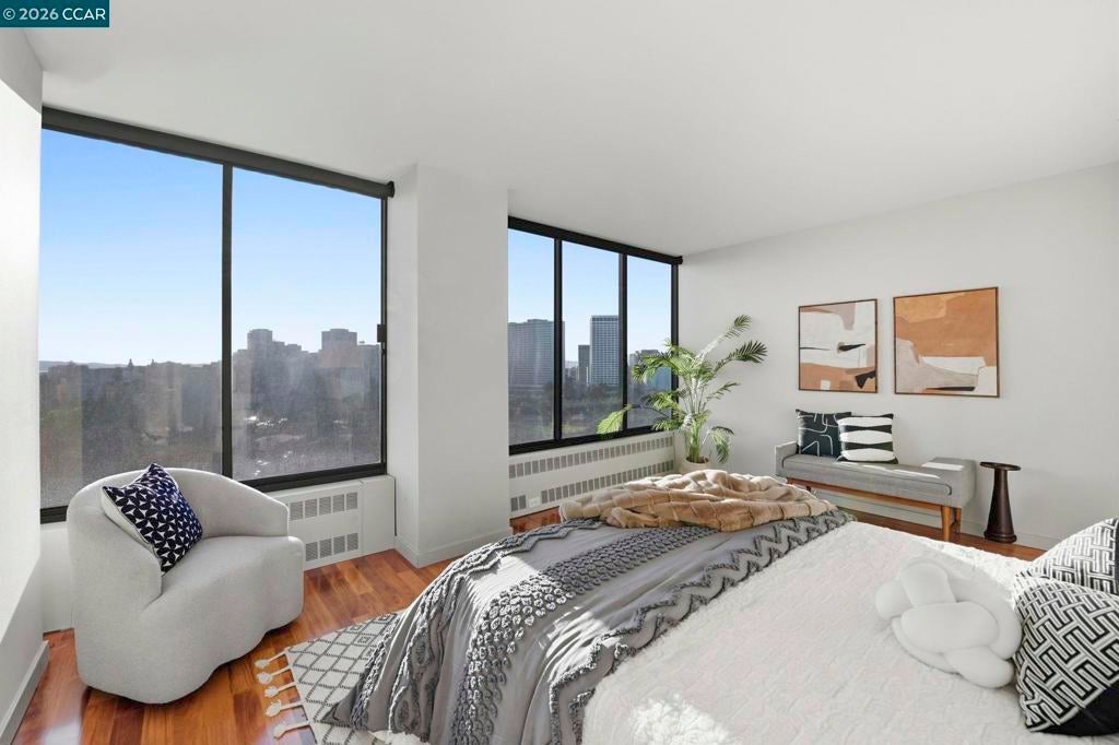 Spectacular corner-unit. Enjoy the sparkling views of Lake Merrit, as well as sights of sophisticated city lights from your private perch. Located in one of Oakland's most desirable Luxury buildings. Floor to ceiling windows from every angle. Primary bedroom includes wood floors throughout, custom remote-control sunshades and built in closets with soft close drawers. What else can you ask for? Choose to be among clouds, while enjoying city life. A stone's throw from restaurants, transportation and the Oakland's Saturday Farmers Market. Amenities include full gym, covered pool, sauna, front door security, underground parking, and unmatched access to walking trails and picnic areas around Lake Merrit. Minutes from freeways and BART. Views: Downtown
