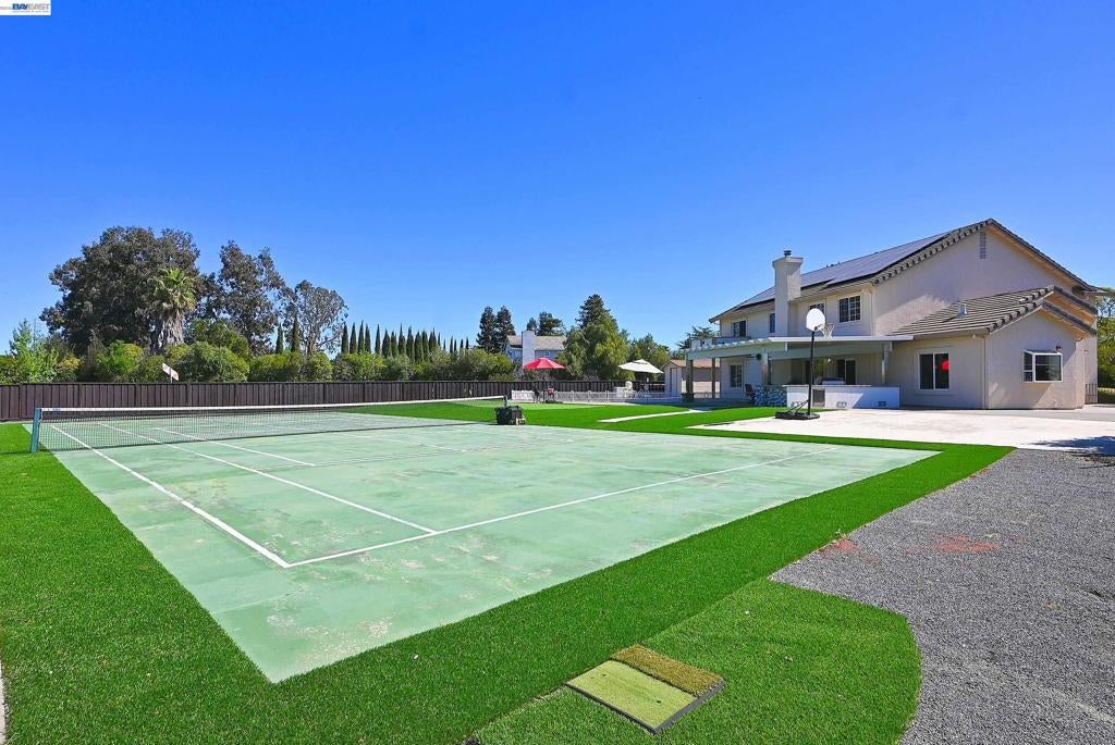 This property presents a rare opportunity to own a private, resort-style estate on an expansive 26,535 sq ft lot/ over half an acre with no HOA. This 6-bedroom, 3 full-bath residence offers the perfect balance of space, comfort, and elevated living. A large gated driveway provides privacy, security, and abundant additional parking, complementing the spacious three-car garage. Electric solar enhances energy efficiency and long-term savings. Inside, the kitchen serves as the heart of the home, and a seamless connection to the main living areas, ideal for both everyday living and entertaining. Step outside to your own private retreat. The beautifully designed grounds showcase a sparkling swimming pool with spa, a custom BBQ setup, and a covered patio perfect for year-round outdoor dining. Enjoy your own private tennis or pickleball court, dedicated basketball area, and personal putting green, creating an unparalleled lifestyle experience rarely found in residential properties.Located near scenic walking trails and just minutes from Livermore’s vibrant downtown, wineries, parks, shopping, and dining, this exceptional property offers privacy, flexibility, and resort-style amenities.